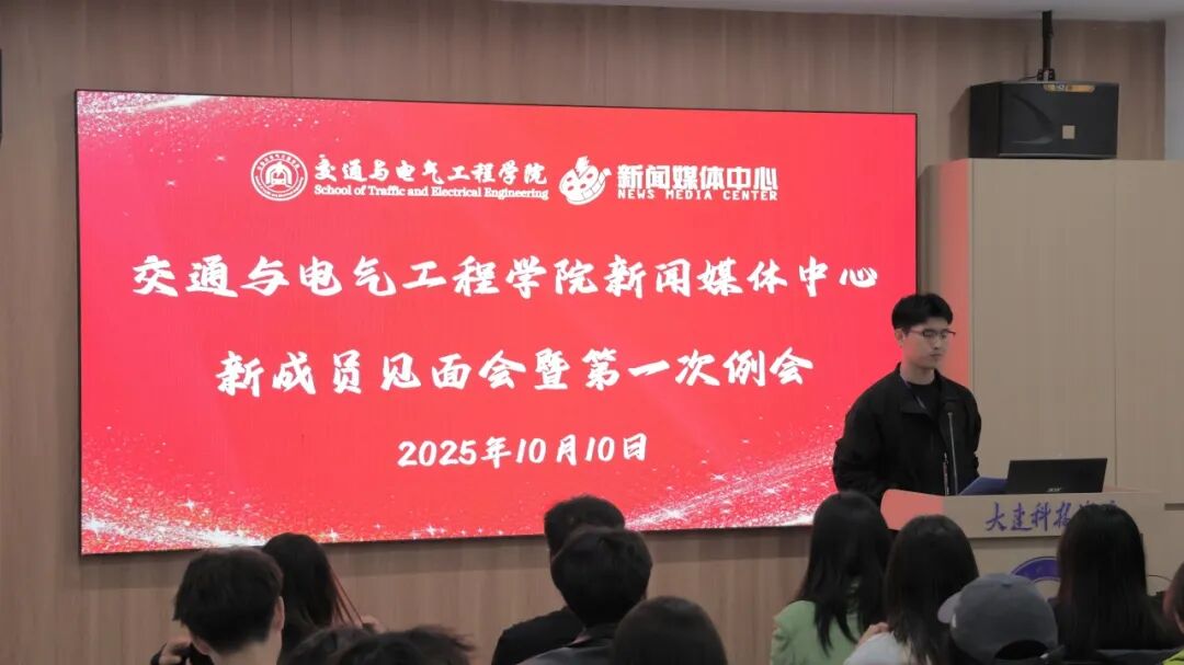 为加强新闻媒体中心成员内部交流、明确各部门职责。2025年10月10日17:10,交通与电气工程学院新闻媒体中心新成员见面会暨第一次例会于汇智育才综合楼路演厅顺利召开,出席本次会议的有:新闻媒体中心指导教师李卯、指导教师刘思琪、新闻媒体中心主任张洋、副主任陶畅、副主任王茁旭及新闻媒体中心全体成员。