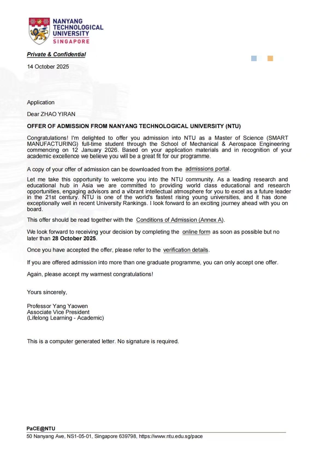 对于学弟学妹,赵翼然分享了自己的座右铭:“人生没有白走的路,每一步都算数。”他鼓励大家“找到自己的热爱,然后全力以赴,南洋理工的offer或许离你并不遥远”