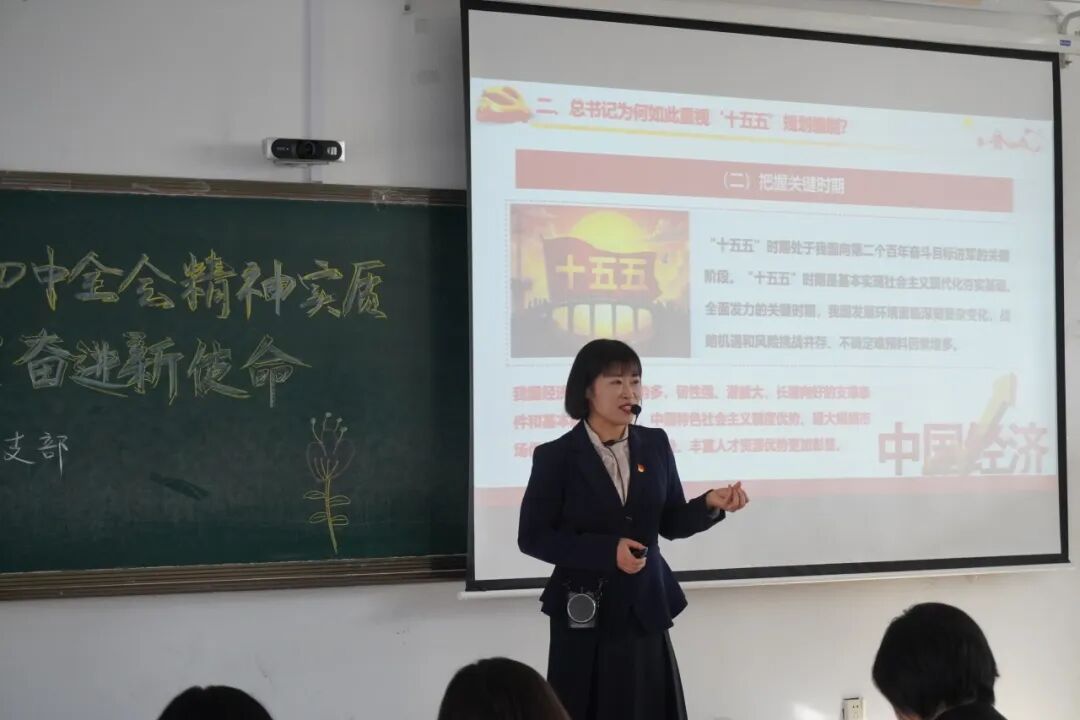 宣讲中,副院长郑旭从党的四中全会的内涵、“十五五”规划编制的意义以及主要内容三大维度展开解读。她指出,党的二十届四中全会作为“十四五”收官、“十五五”启幕的关键节点会议,审议通过的“十五五”规划建议为中国式现代化建设绘制了路线图。在解读习近平总书记重视“十五五”规划编制的核心要义时,重点阐释了新质生产力发展、以人民为中心等关键要求,结合历届党的四中全会历史作用,让老师们明晰了会议的特殊历史地位。