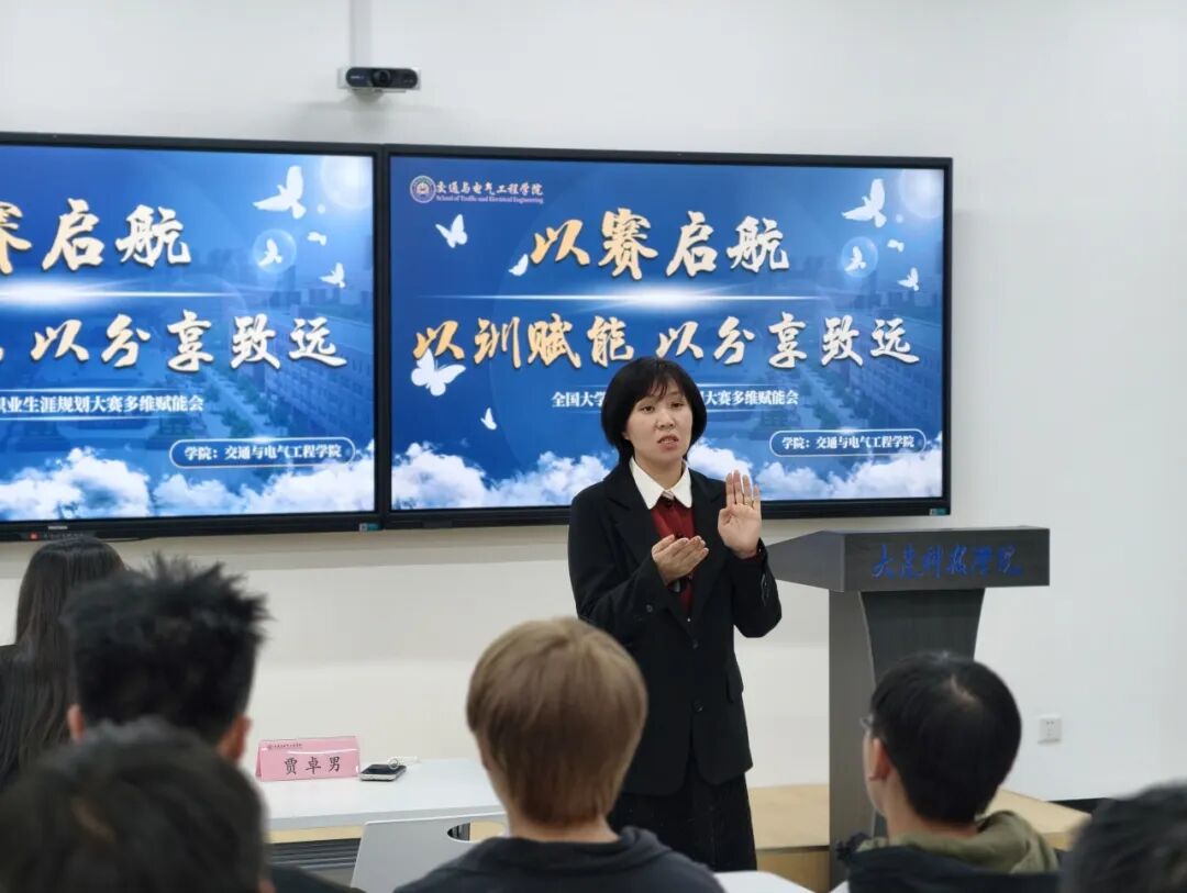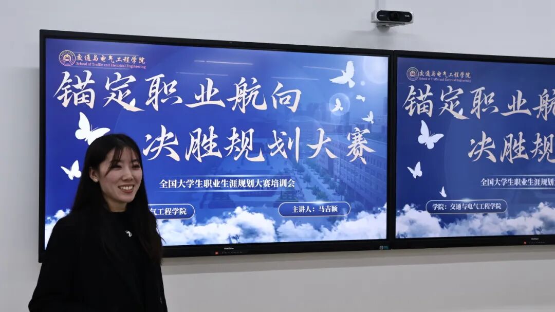 为帮助交通与电气工程学院学子明晰职业发展方向、提升职业规划竞赛实战能力,2025年11月24日,交通与电气工程学院于Peim104教室举办职规赛专项培训。本次培训由辅导员马吉颖老师主讲,赵鑫泽学长线上连线助力,学院党总支副书记兼副院长贾卓男老师及学院各年级职业规划大赛学生代表共同参与。