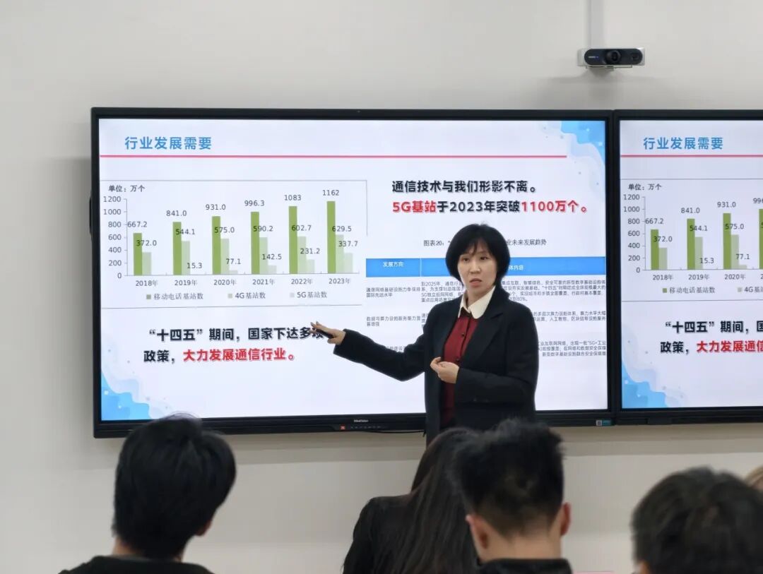 培训尾声,学院党总支副书记兼副院长贾卓男老师作总结讲话。她结合22级通信工程专业彭景的参赛PPT,着重强调三点核心要求:一是职业目标的锚定,二是作品质量的打磨,三是展示能力的强化。同时,她鼓励同学们树立长远职业目标,紧扣专业与行业需求,以扎实的规划奔赴职业新程。