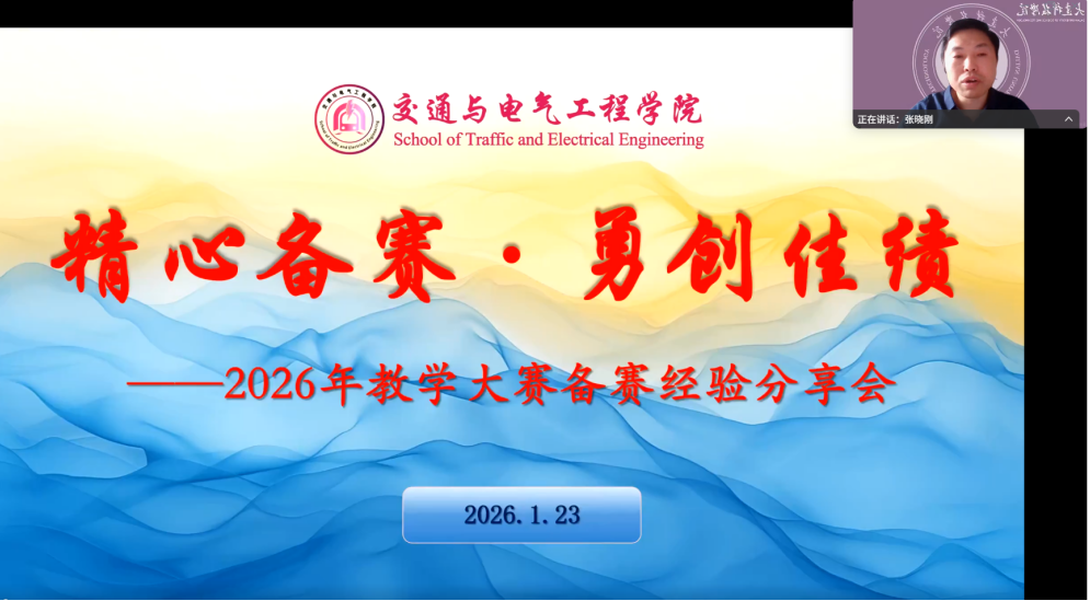 为充分发挥教学竞赛的示范引领作用,全面提升参赛水平与教学素养,我院于2026年1月23日以“精心备赛,勇创佳绩”为主题,在线上圆满召开了2026年教学大赛备赛经验分享会。本次会议特邀张铭真、宋美霞教学名师就参加国家、省级教创赛的经验体会,从备赛策略、教学设计等方面进行交流分享。学院董玮院长、报名教学比赛及对教学大赛感兴趣的老师参加了本次交流分享会,会议由副院长张晓刚主持。