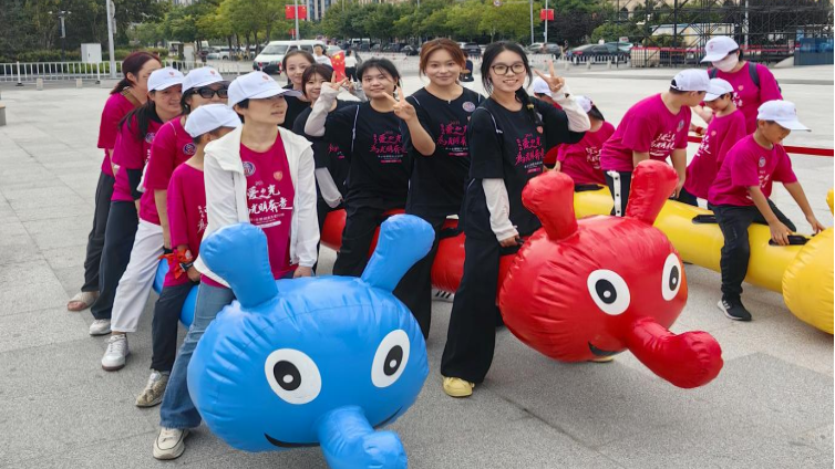 活动当天下午,我院社会工作专业师生抵达集合点,统一身着印有 “爱之光 为光明奔走” 的粉色和黑色文化衫,在专业老师的带领下完成热身运动。出发指令发出后,师生们精神抖擞地踏上健步走路线,大家相互鼓励、并肩前行,在 “爱心打卡点”,师生们积极参与活动游戏,引得现场工作人员与其他参与者纷纷点赞。
