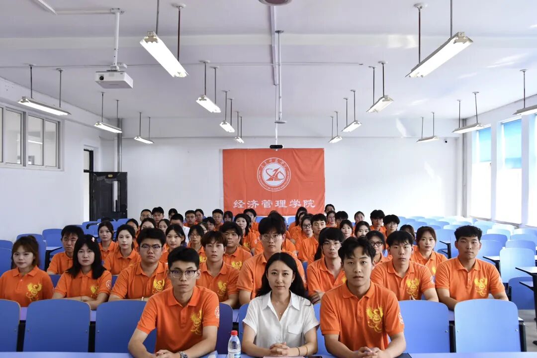 由经济管理学院学生会主席许毓轩发言,他首先感谢过往成员的付出,强调学生会将秉持“服务同学,助力成长”宗旨,打造开放包容协作平台,鼓励新老成员积极尝试、共同成长。并明确在未来的工作中将勤思考、肯吃苦、敢创新,做好迎新工作展现学院风貌,携手以青春奋斗书写学生会更精彩篇章。