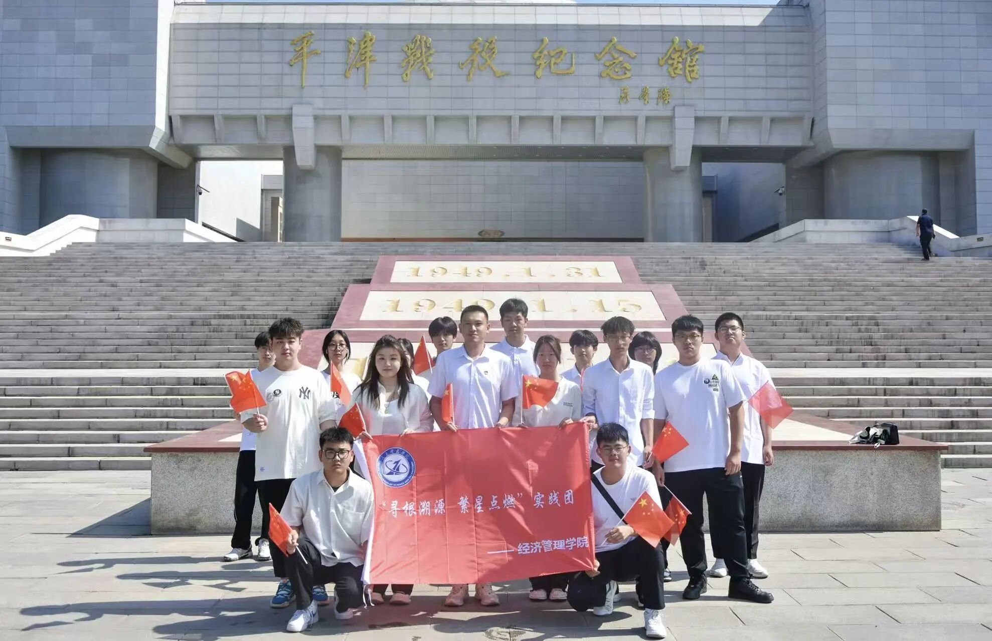为铭记红色经典的历史记忆,传承不朽的红色精神。2025年7月,“寻根溯源,繁星点燃”实践团在辅导员王泽中老师带队下,走进平津战役纪念馆,在回望历史的过程中汲取红色精神养分,让初心使命的内涵深植于心。