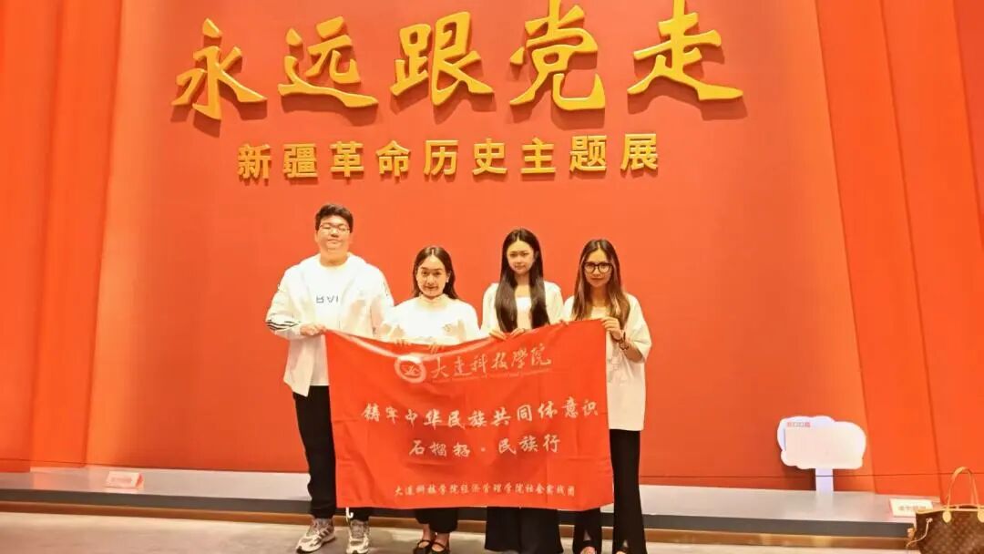为搭建各民族青年交流互鉴的桥梁,让民族团结的理念扎根青年心中,大连科技学院组织学子前往新疆,开展“石榴籽・民族行”社会实践活动。今年是新疆维吾尔自治区成立七十周年,在新疆籍派驻老师娜菲沙的带领下,经济管理学院新疆籍学子们走进新疆革命历史主题展,于历史与文化的交融中,厚植民族团结之情。