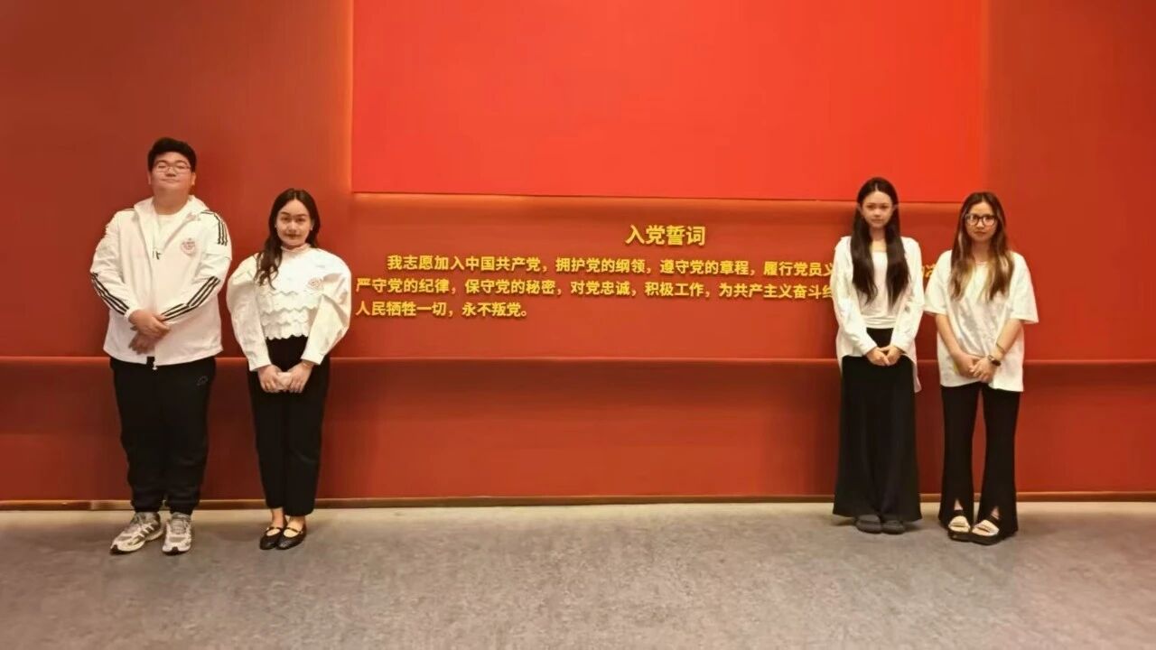 在鲜红的入党誓词前,学子们庄重伫立,接受精神淬炼。此次新疆之行,既是文化历史探访,更是触及灵魂的民族团结教育课。大家深切体会到,新疆各民族相亲相助的实践,正是中华民族共同体意识的生动写照。大家纷纷表示,将以此次实践为契机,做民族团结的践行者与传播者,把新疆的温暖与力量带回校园,让民族团结之花绽放在青春岁月,为铸牢中华民族共同体意识注入青春动能。