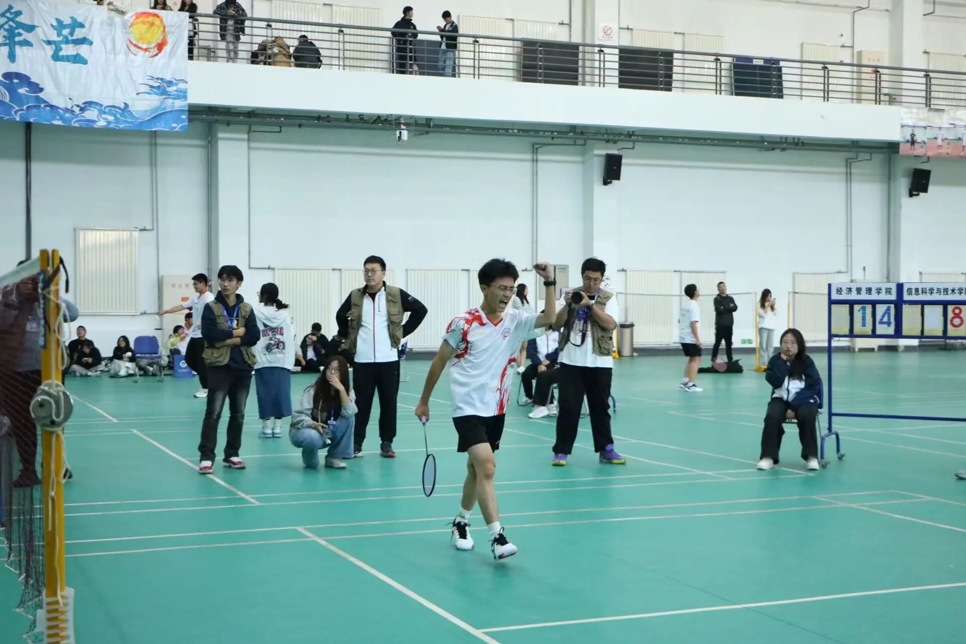 为丰富校园文体生活,弘扬顽强拼搏、团结协作的体育精神,促进学子们德智体美劳全面发展。我校于2025年10月16日在文体楼一楼接连开展第十一届“阳光体育文化节”羽毛球半决赛与总决赛,经济管理学院勇夺本次赛事总冠军,我院团委学生会全体成员均到场为选手加油助威。