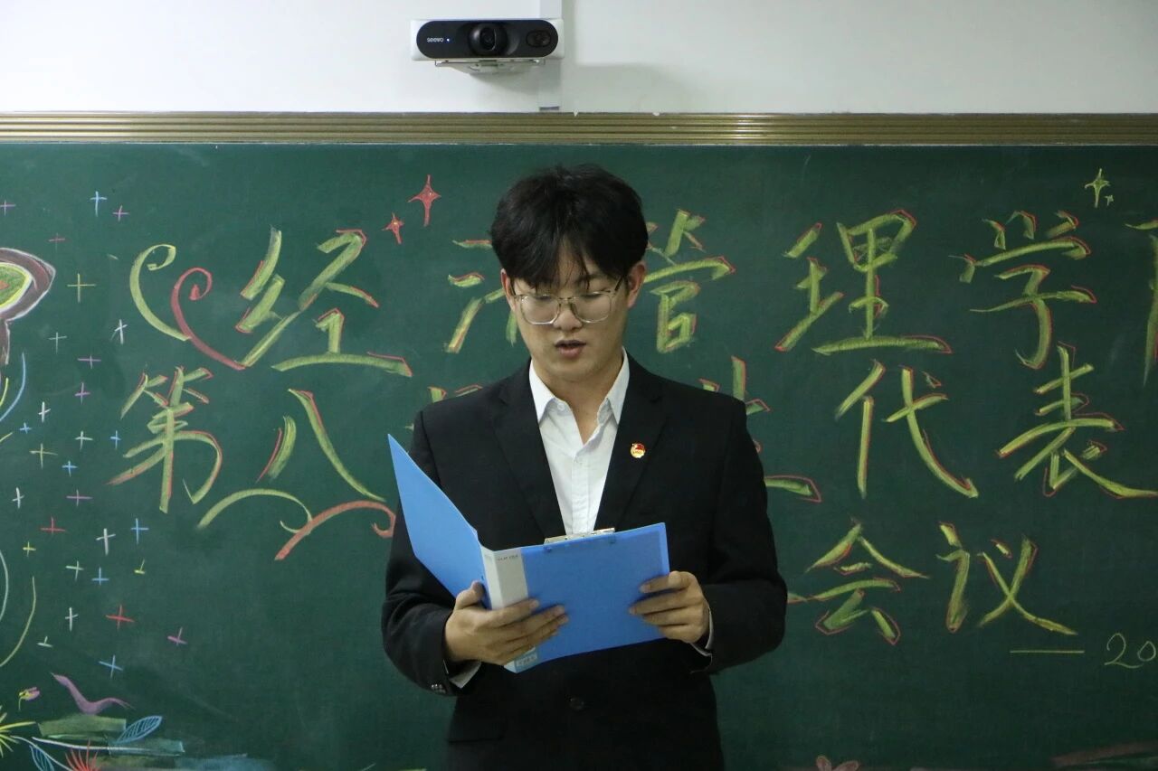 大会第四项 大会筹备组张可鑫宣读大连科技学院经济管理学院第八次学生代表大会主要议程。