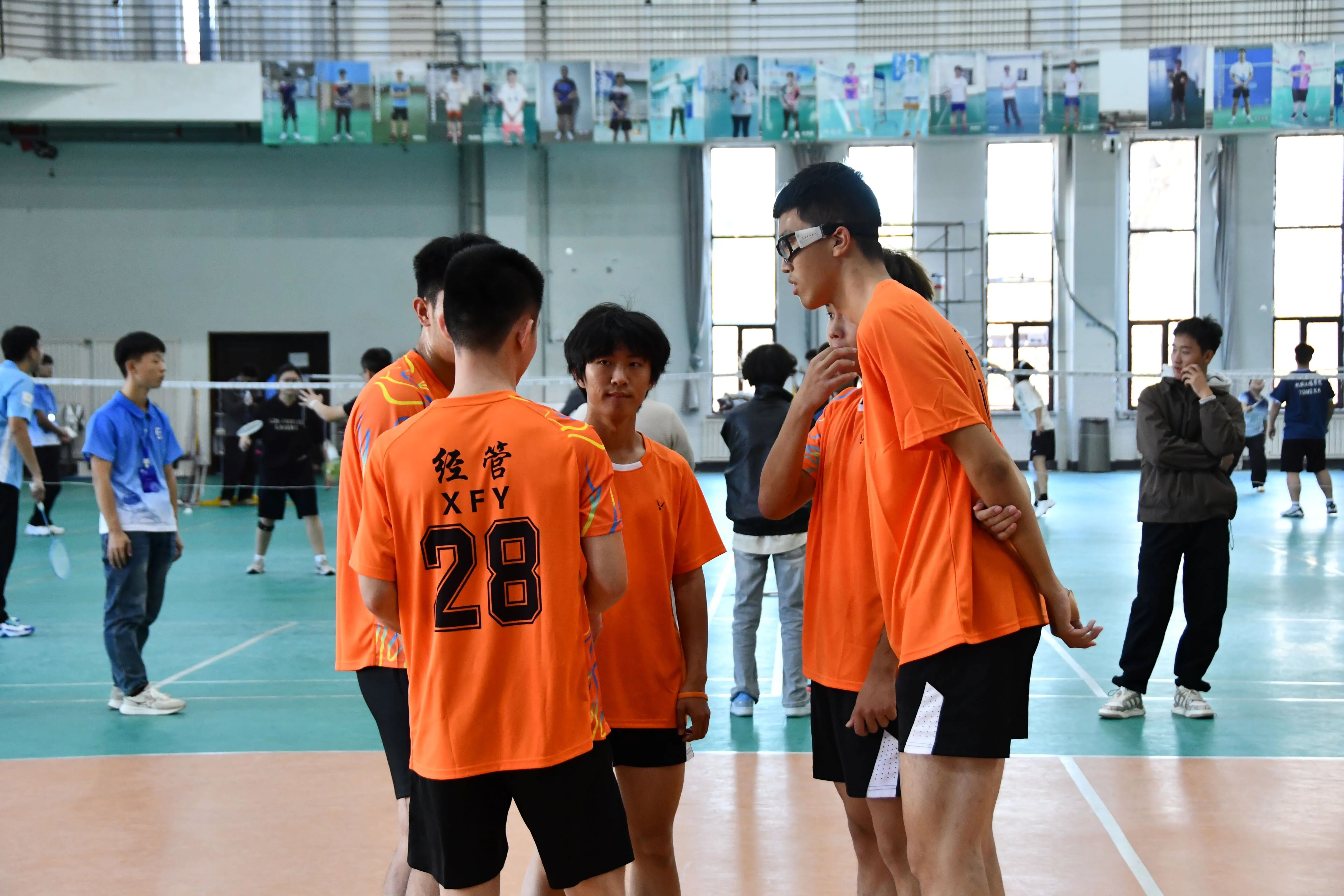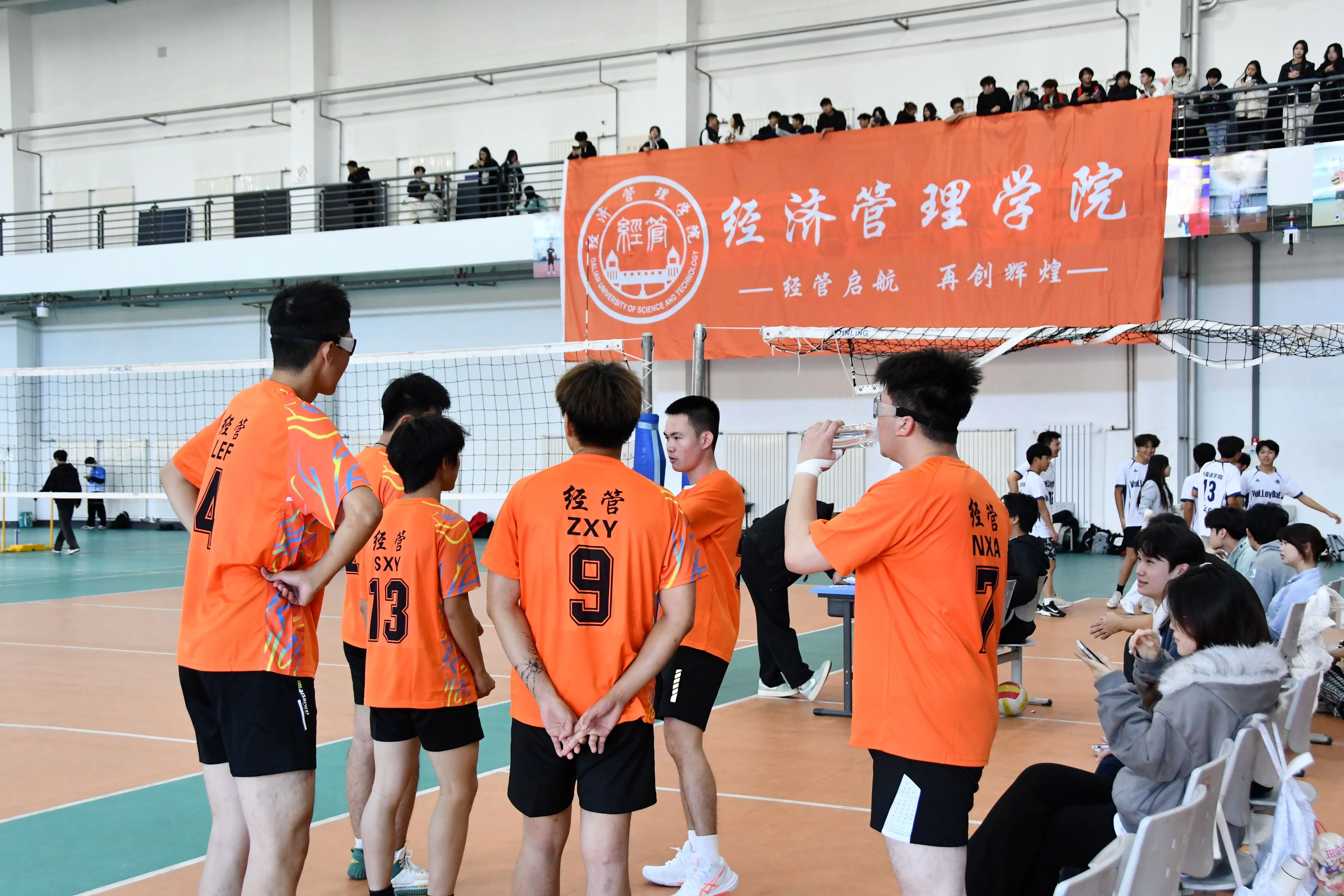 虽与半决赛的胜利失之交臂,但这份经历化为前行的动力。2025年11月13日12:30,三四名决赛开始,赛场之上,我院队员脚步碎移如织,扑地救球的瞬间,球衣擦过地板带起轻响,汗水顺着发梢砸在场上。进攻端扣杀凌厉破防,防守端拦网密不透风,每一次飞身补位、每一回传接,都将我院队员的团队默契展现得淋漓尽致。最终,在上半场结束的哨声响起时,我院以领先的势头进入了下半场。