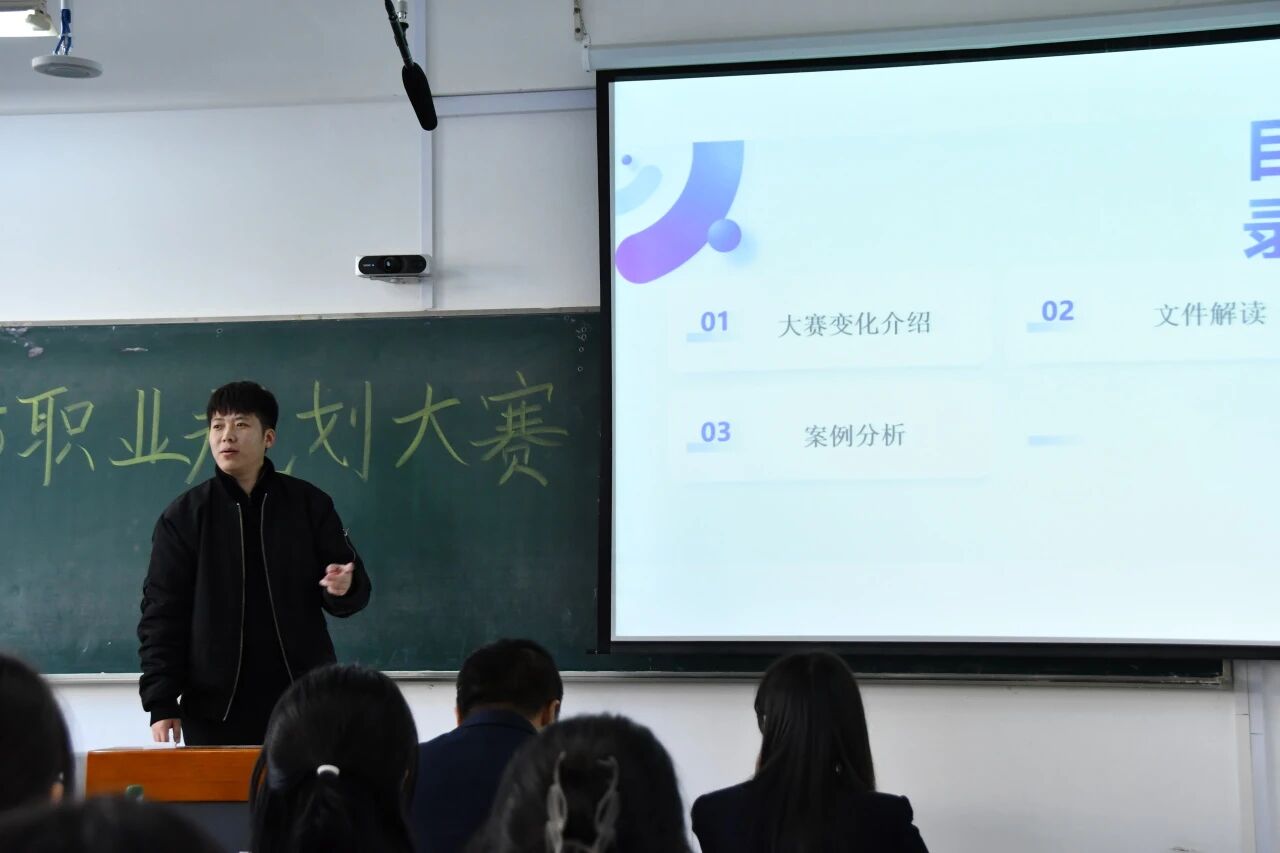 为深入响应国家加强新时代大学生职业发展教育与高校毕业生就业创业指导的政策部署,助力学子破解职业迷茫、明确发展方向,强化职业认知、目标锚定及路径落地的核心能力,我院于近期组织开展职业生涯规划大赛专项培训。本次培训创新设置成长赛道与就业赛道双轨并行模式,为确保培训的高质量与专业性,我院特别邀请招生就业处的韩冰老师和王爽老师。本次活动由辅导员岳财玉老师主持、王爽老师主讲。