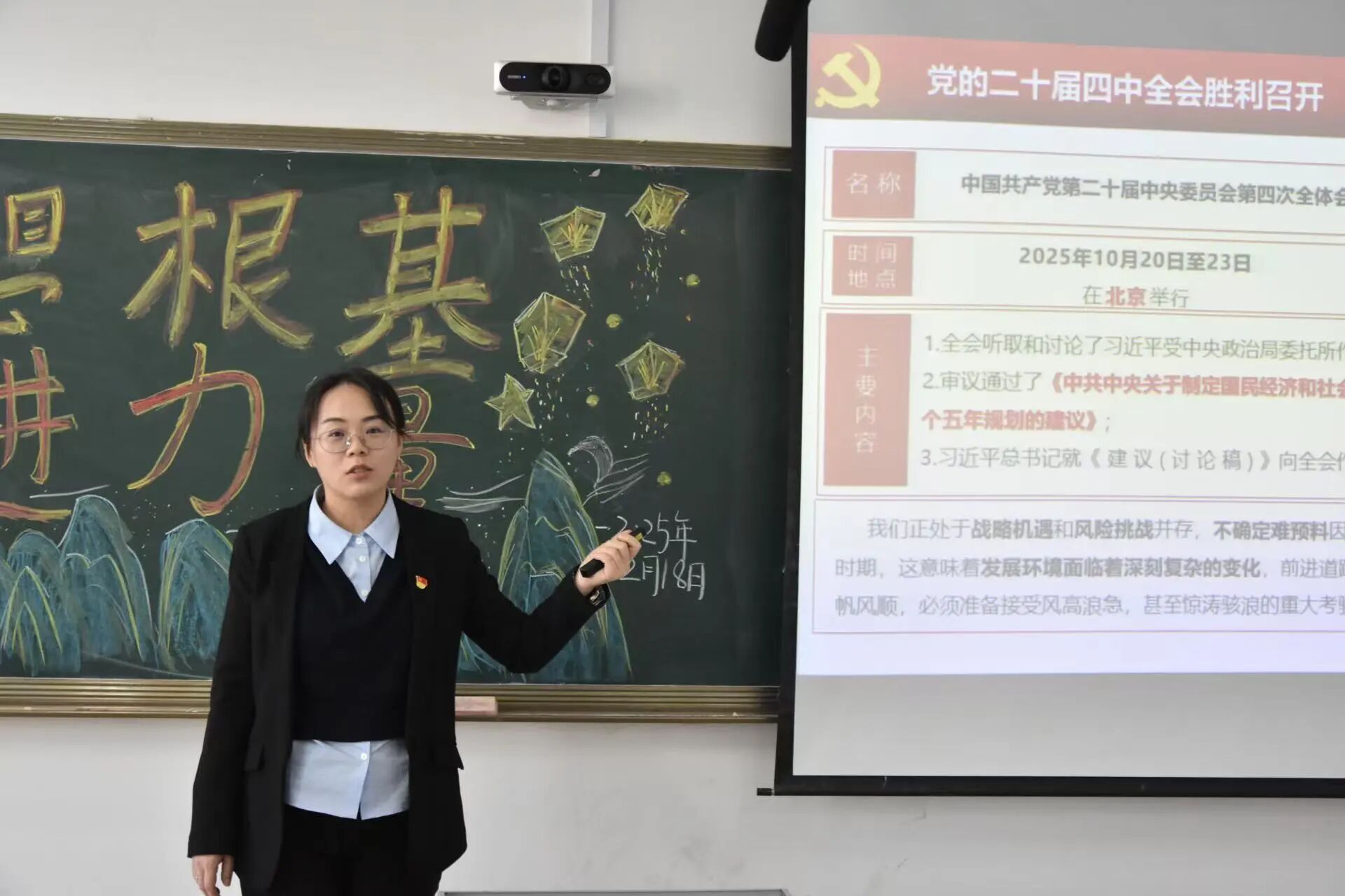 本次党课以党的二十届四中全会精神为核心,紧扣“国家治理体系和治理能力现代化”重大命题,立足青年成长与时代发展结合点授课。王雪老师从全会时代背景、核心议题切入,以“理论+案例”的方式解读全会核心要义,梳理新思想、新论断、新要求。结合经管学科特色,引导学生思考党的二十届四中全会精神与专业学习的关联,明确入党积极分子要做理论“深耕者”、行动“实干家”。学子们认真学习,对全会精神和自身使命担当有了更清晰的认知。