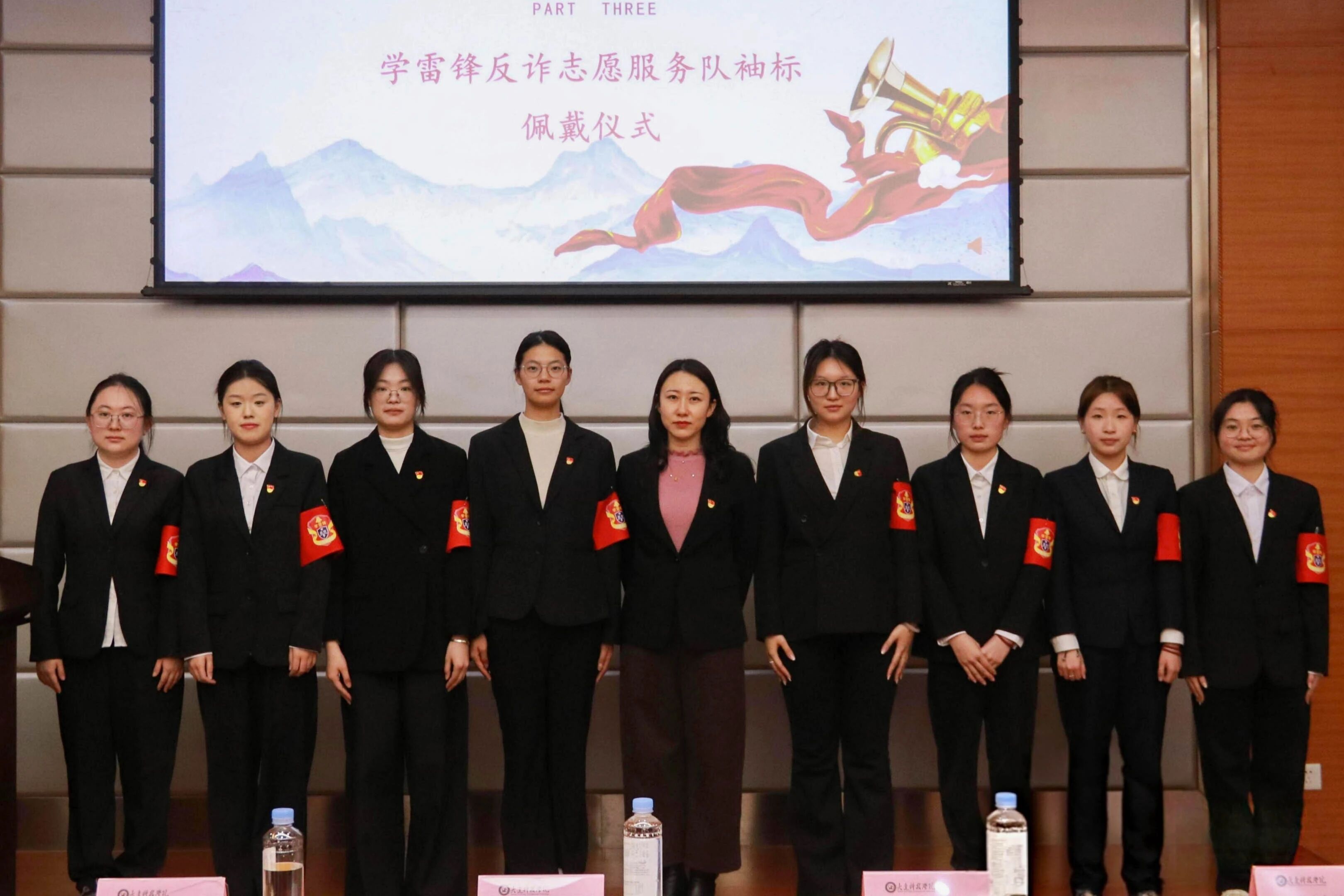 随后,经济管理学院正式成立学雷锋反诈志愿服务队,并由经济管理学院党总支副书记、副院长梅傲雪老师为服务队代表佩戴袖标。未来,学院将组织志愿服务队深入海花社区,面向居民开展反诈案例讲解会,用通俗语言拆解常见骗局套路与手法;走进伯阳小学,通过讲解校园高频骗局、开展反诈知识趣味抢答赛,向小学生普及反诈知识,传递安全温暖,让雷锋精神在基层服务中落地生根。