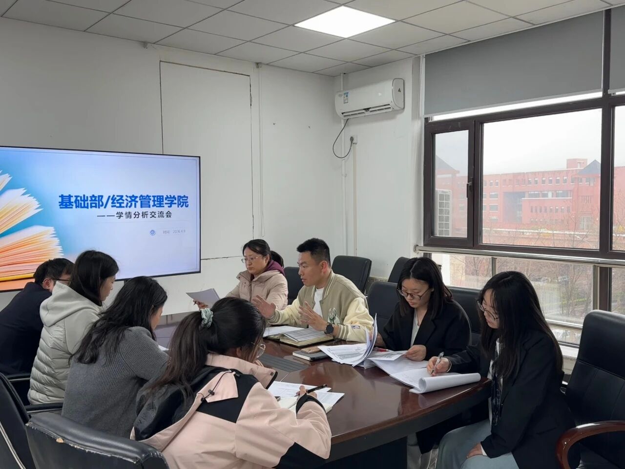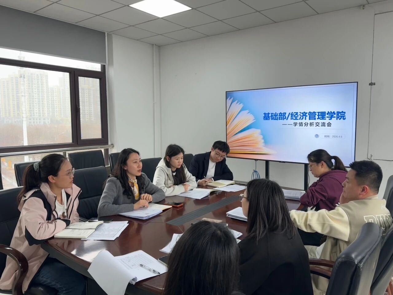 为全面掌握2025级大一新生高等数学学习现状,精准破解学生学习难题,强化师生协同联动、凝聚全方位育人合力,近日,学校基础部与经济管理学院在E4会议室联合召开大一高等数学学情分析交流会。基础部副主任王飞、教学大一年级的全体高数教师、经济管理学院党总支副书记、副院长梅傲雪及2025级全体辅导员参加会议,会议围绕学情研判、问题整改、协同育人三大核心展开深入交流研讨。