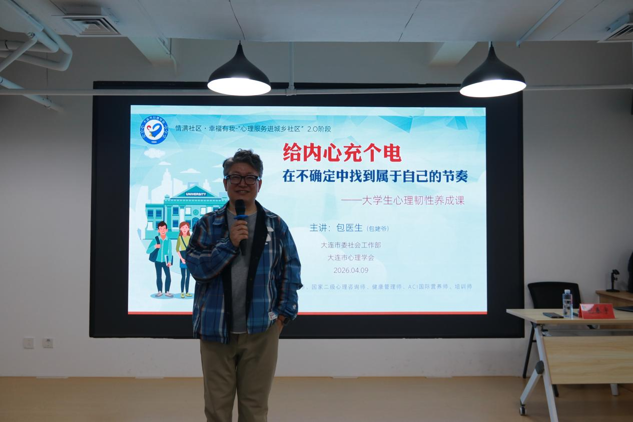 当天下午,大连市心理学会包春宇走进大连科技学院,带来“给内心充个电 ——在不确定中找到属于自己的节奏”专题培训。通过趣味课堂互动游戏,引导学生探索自我、调节心态,将心理服务精准送达校园,助力青年学子以积极状态应对学习与生活。