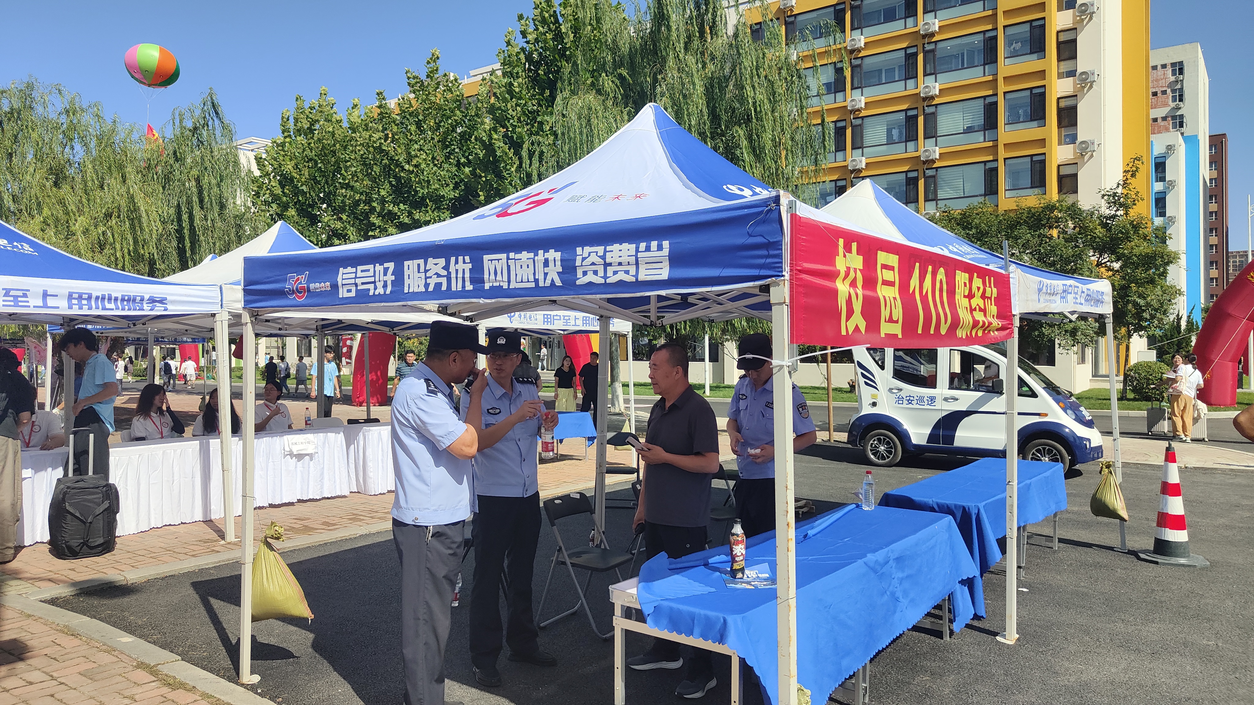 1.公安部门强力护航。校东门、北门设置联合执勤岗,公安干警全天守候,随时处置突发情况。旅顺公安分局内保大队到校关注迎新情况,派出所民警通过派发宣传单和扫码注册“滨城防诈”小程序,帮助新生揭露“校园贷”“兼职陷阱”等骗局,筑牢安全防线。现场发放宣传手册300余份。