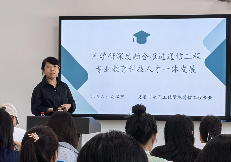 随后,交通与电气工程学院的刘江宁老师以“产学研深度融合推进通信工程专业教育科技人才一体发展”为题,通过典型案例分析,重点讲解了如何将产业前沿技术、企业真实项目有机融入课程建设、课堂教学。