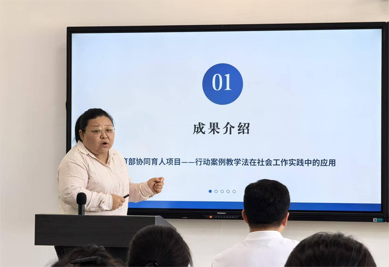 随后,经济管理学院张岩老师以社会工作实践教学为例,深入讲解了如何通过行动案例教学法优化实践课程设计,从而形成社会工作专业实践新的教学模式,社会服务效果显著。