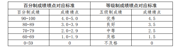 课程考核成绩百分制、等级制与绩点对应标准如下: