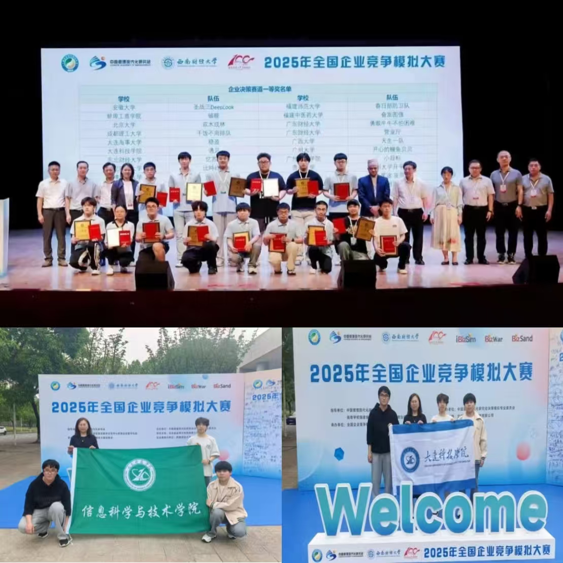 5月18日,2025年全国企业竞争模拟大赛总决赛在西南财经大学落下帷幕,来自北京大学、浙江大学、武汉大学、南开大学、吉林大学和西南财经大学等高校的349支队伍晋级总决赛进行巅峰对决。来自大连科技学院的“遇见”团队(田桂林 潘薪宇 梁心茹)在决赛中表现优异,最终获取全国一等奖的好成绩。