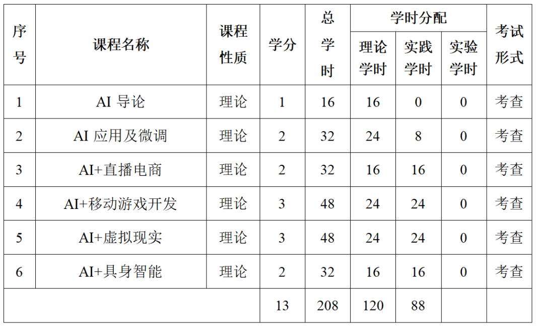 人工智能主干课程包括:AI导论、AI应用及微调、AI+直播电商、AI+移动游戏开发、AI+虚拟现实、AI+具身智能。