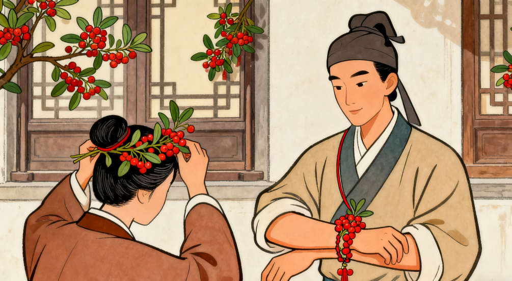 古人认为茱萸具有辟邪、消灾的作用,因此在重阳节当天,会将茱萸佩戴在手臂上,或插在头上、门窗上,以祈求平安吉祥。茱萸是一种常绿小乔木,其果实具有特殊的香气,在古代被视为一种吉祥之物。