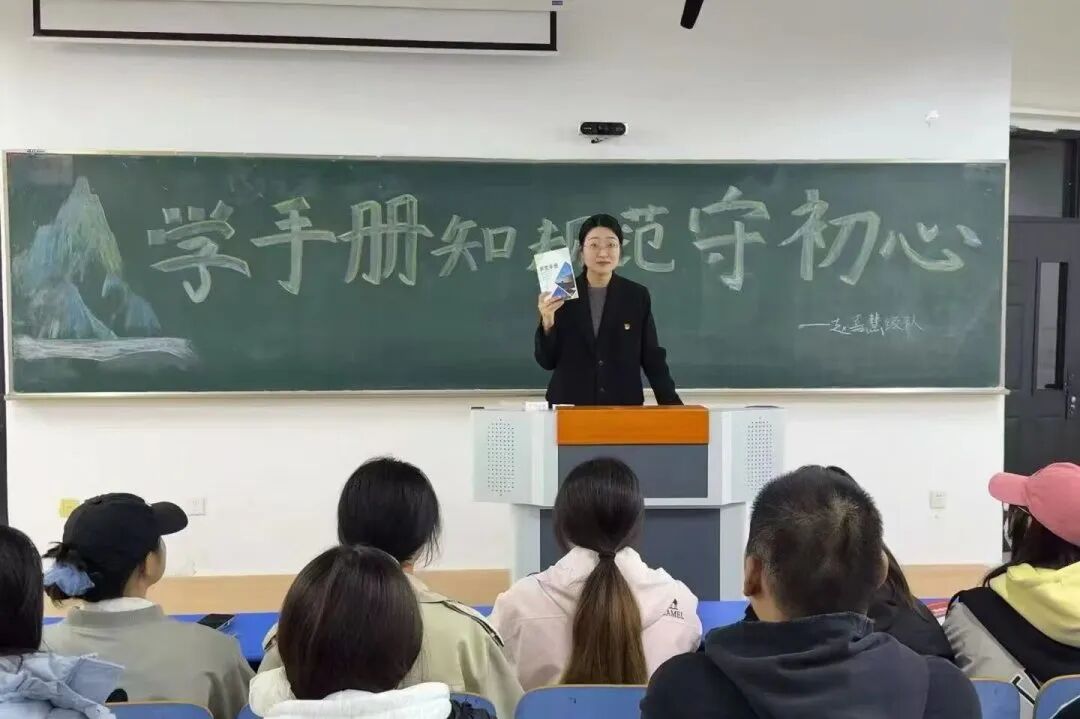 《学生手册》作为学校办学理念、管理制度的集中体现和学生规范行为、维护权益的重要指引,学院辅导员团队结合新生特点,定制了“分层学习+精准答疑+线上考核”的三维学习方案,通过主题班会、线上课件推送、案例分析分享等多种形式,细致解读学籍管理、奖惩制度等核心内容,重点标注奖学金评定等与新生密切相关的条款,助力新生构建清晰的制度认知框架。