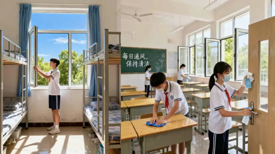 2.优化环境管理:宿舍、教室每日定时通风,定期清洁桌面、门把手等高频接触表面,保持空气流通与环境整洁。