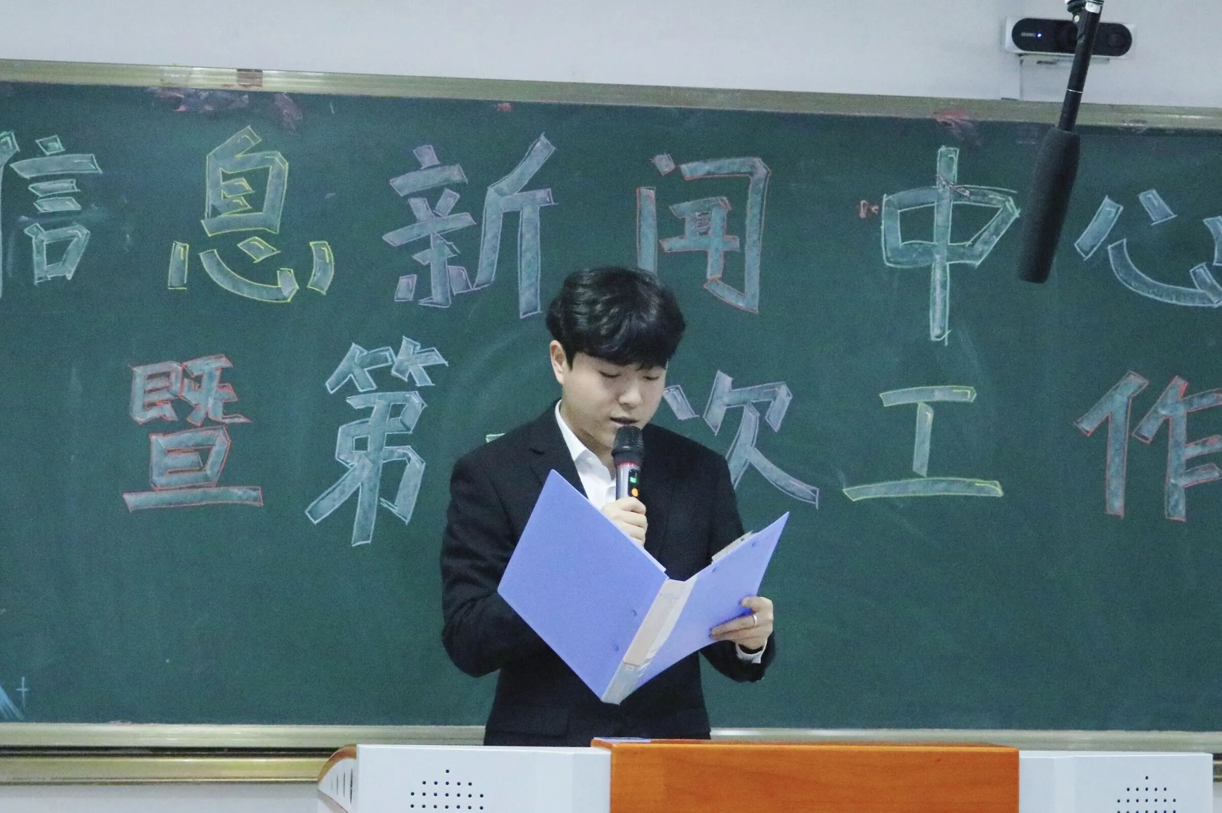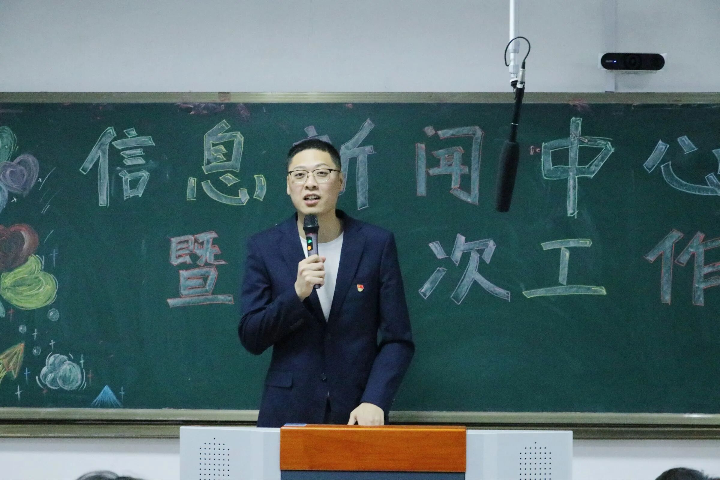 首先,他向加入大家庭的大一新伙伴们表达了热烈欢迎与诚挚祝愿,他表示,信息新闻中心是学院信息集散枢纽、师生沟通桥梁及校园声音传递窗口。其次,他对新成员提出几点希望:第一,希望大家快速融入团队,积极参与各项工作,在实践中锻炼能力、积累经验;第二,希望大家大胆创新,用奇思妙想让内容更鲜活有温度。同时,他强调了纪律与准则:遵守学校规章制度,秉持报道客观公正、真实准确的原则,牢记团队合作、相互支持。最后,他祝愿大家携手共创中心更辉煌的未来。