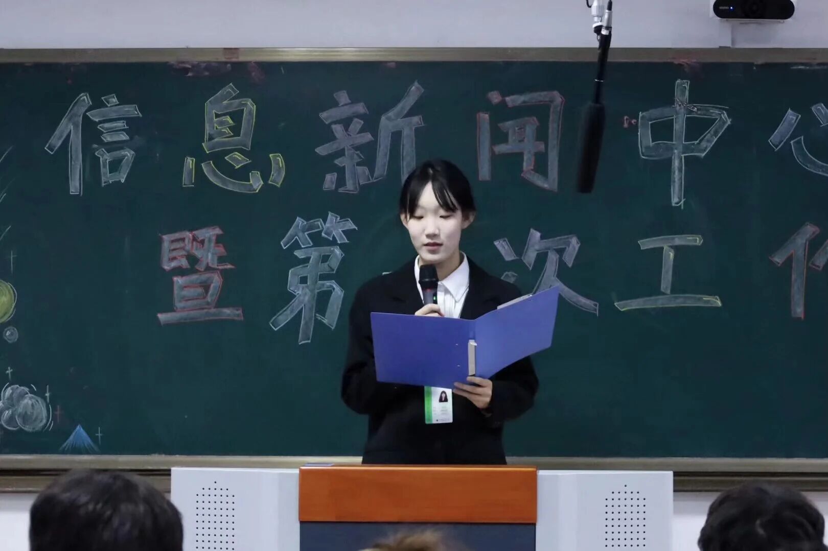 首先,她对本次会议的召开表示高兴,指出工作牌是“承诺的印章”,承载着学院动态“记录者”、师生心声“传递者”、学院形象“代言人”的三重身份。其次,她对大家提出三点期待:第一,守好“真实”底线,确保报道准确无误;第二,练就“过硬”本领,主动学习多岗位技能并精益求精;第三,凝聚“团结”力量,各部门联动配合做好工作。