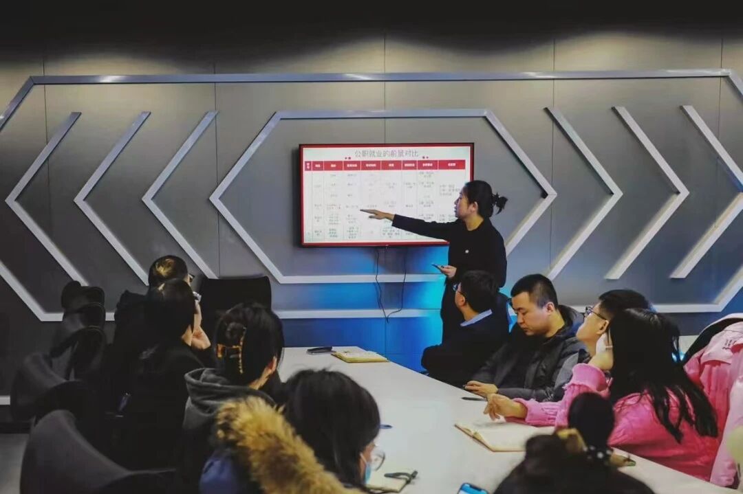 首先,她在分享中明确,我院开设的专业在公职考试中具有显著岗位优势,可报考机关单位覆盖面、选择面广,且多聚焦信息现代化建设相关领域;同时,她纠正了学生在公职考试认知上的常见偏差,明晰合同岗与公职岗位的核心区别,阐述了基层服务项目的“过渡性质”,助力学生规范职业规划方向。