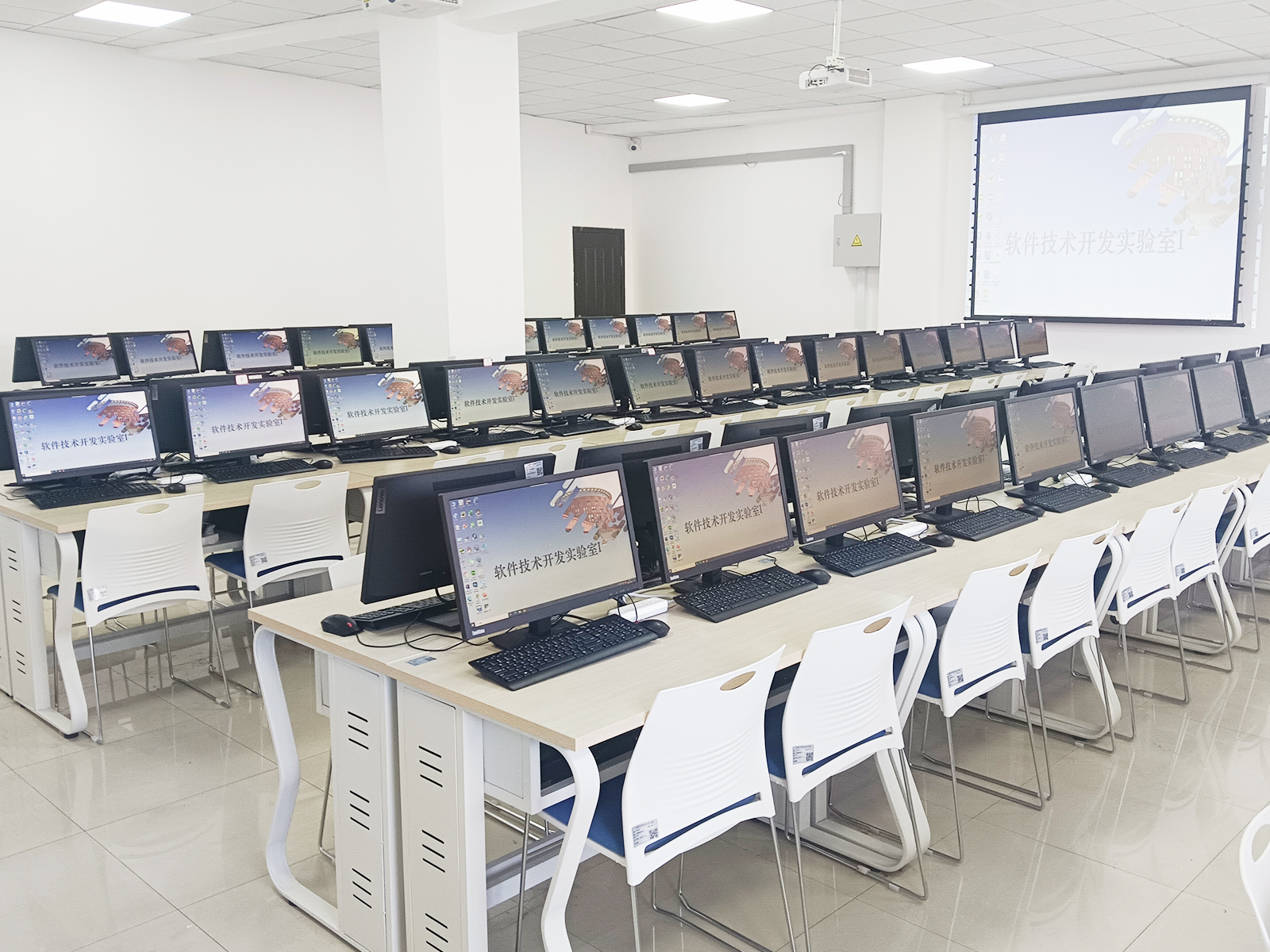 软件技术开发实验室Ⅰ主要服务于软件技术及相关专业。主要满足《计算机应用基础》、《C语言程序设计》、《静态网页设计与制作》、《Java程序设计》、《MySQL数据库技术》、《JavaWeb应用开发》等专业课程的实验教学需求。本实验室配备了高性能计算机、先进的开发软件及网络设备,模拟真实的软件开发环境,为学生提供了一个接近企业实际开发条件的学习空间。