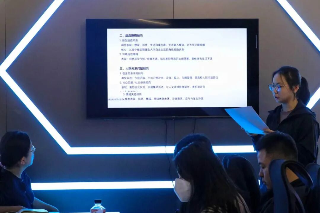 随后,她向参会辅导员详细讲解了针对心理问题学生的工作方法,深入解读了“四级预警网络”的核心运行机制。她围绕常态化教育、健全预警机制、强化重点关注、深化家校协同四个维度,系统梳理工作流程,帮助辅导员熟练掌握干预技巧,切实提升心理育人专业能力,为后续开展精准心理疏导、有效防范校园心理危机奠定坚实基础。