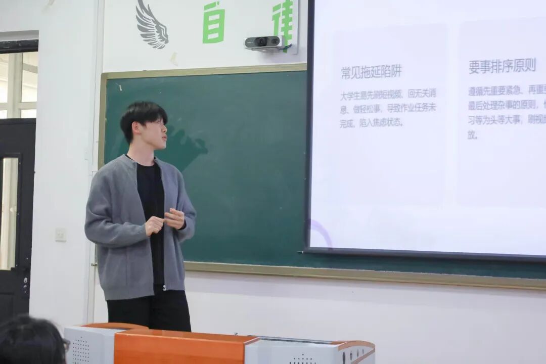 首先,纪检部副主席金麟哲结合自身工作经历展开分享。他讲到,做好时间管理,才能平衡好学习与学生工作,做到两不误、共促进。做好学习规划,同时不敷衍每一项工作任务,是提升学生综合素质的关键。他认为,大家应当学习体育精神中的竞技意识,在工作中保持奋勇争先、追求卓越的态度。同时,良好的人际沟通能力同样不可或缺,能够有效协调各项事务、凝聚团队合力,推动学生会工作高效开展。他强调,树立责任意识是学生干部的立身之本。部长与部员需坚守岗位职责、认真履职尽责。尤其是纪检工作,更要做到严谨细致、公平公正。他希望全体成员将时间管理、竞技精神、沟通能力与责任意识融入日常,在实践中不断提升自我,在服务中收获成长,以更饱满的状态投入到后续工作之中。