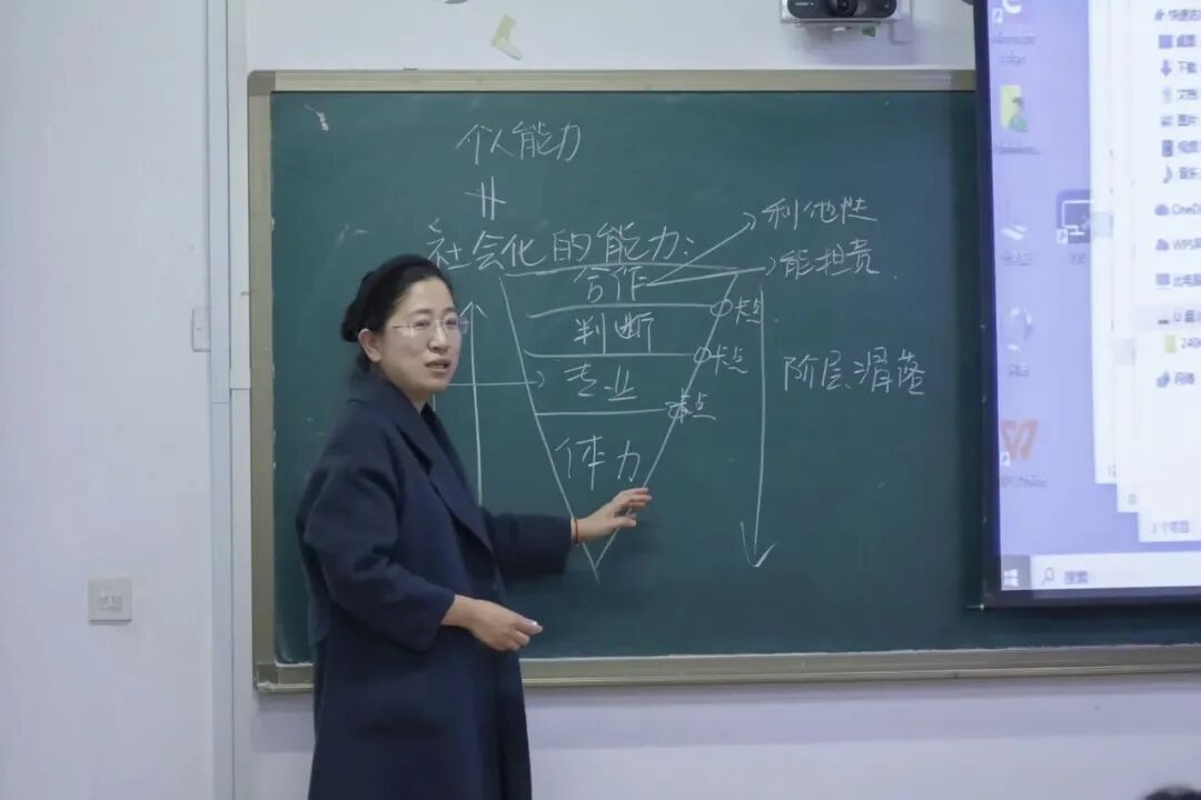 其次,姚欣老师围绕大学生社会化这一核心与大家深入交流。她指出,大学阶段的学习与实践,最终都是为了更好地适应社会、服务社会。社会化能力绝非单一技巧,而是分为体力、专业、判断、合作四个阶段。“千里之行,始于足下”。刚入职场的新人都是从小事做起。她希望大家耐得住性子,从小事做起,不断积累,提升自己的综合素质和社会化的能力。她特别提到,团委学生会是锻炼社会化能力的最佳舞台,希望同学们在组织活动、协调事务的过程中,不仅能把事情做成,更能学会在复杂局面中保持冷静,在跨部门协作中搭建桥梁,在困难挑战面前展现韧性。她勉励大家,要从每一次活动的策划、推进与复盘里积累解决问题的经验,打磨待人接物的分寸,把校园里的每一次历练,都变成未来走进社会的坚实底气。