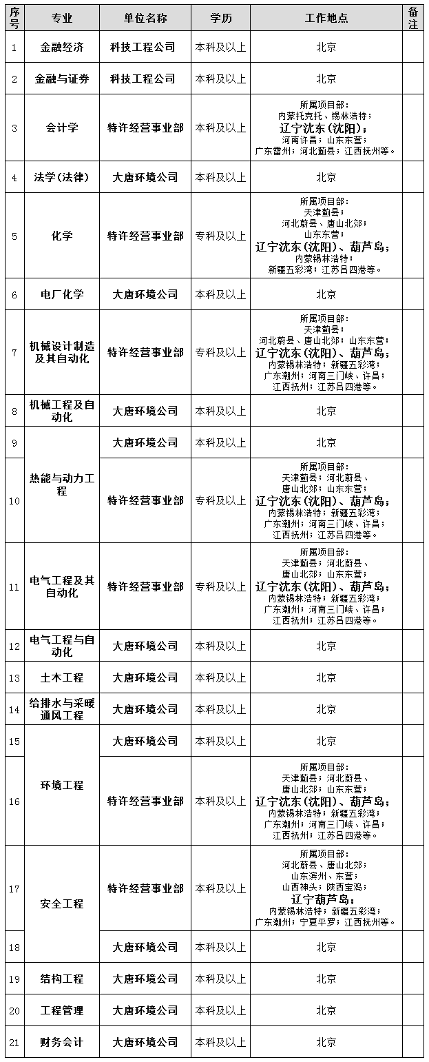 大唐环境产业集团2021校园招聘公告