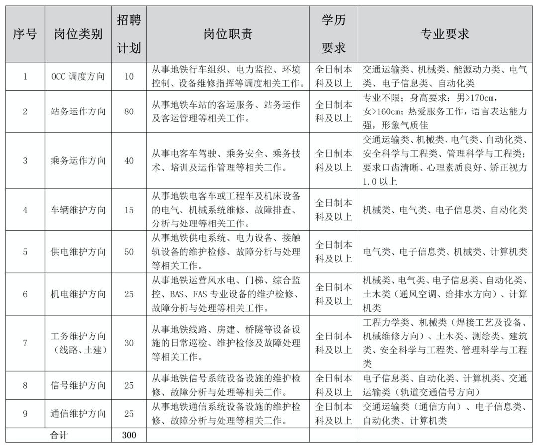 2.本次招聘均为地铁运营一线生产岗位,入职后统一执行运营公司应届大学生薪酬待遇,后续根据个人培养发展情况,可向技术、职能及管理类岗位多通道发展。
