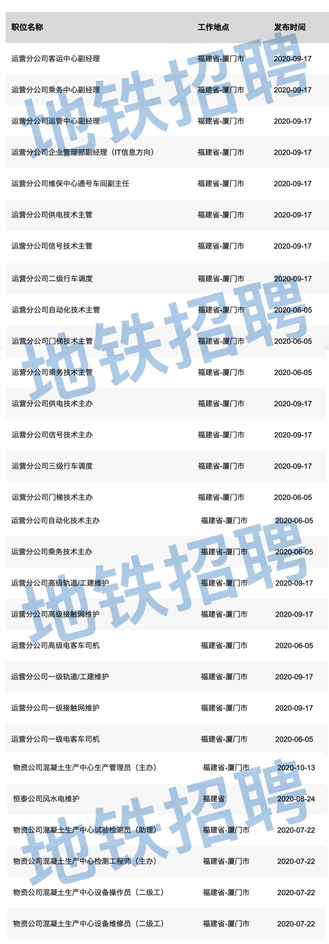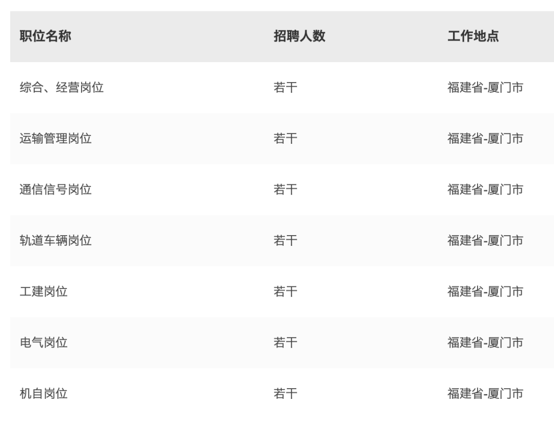 厦门轨道交通集团最新招聘