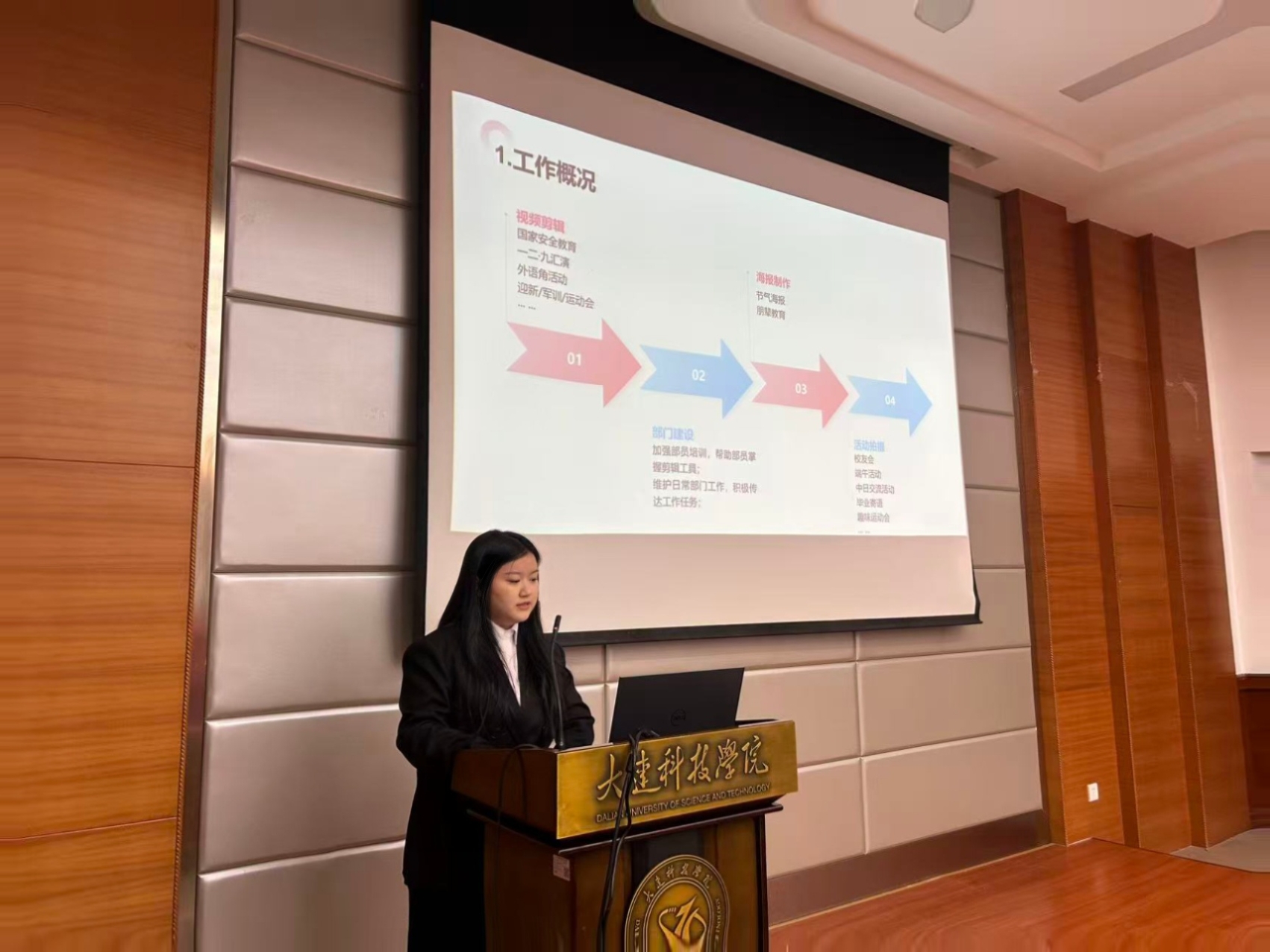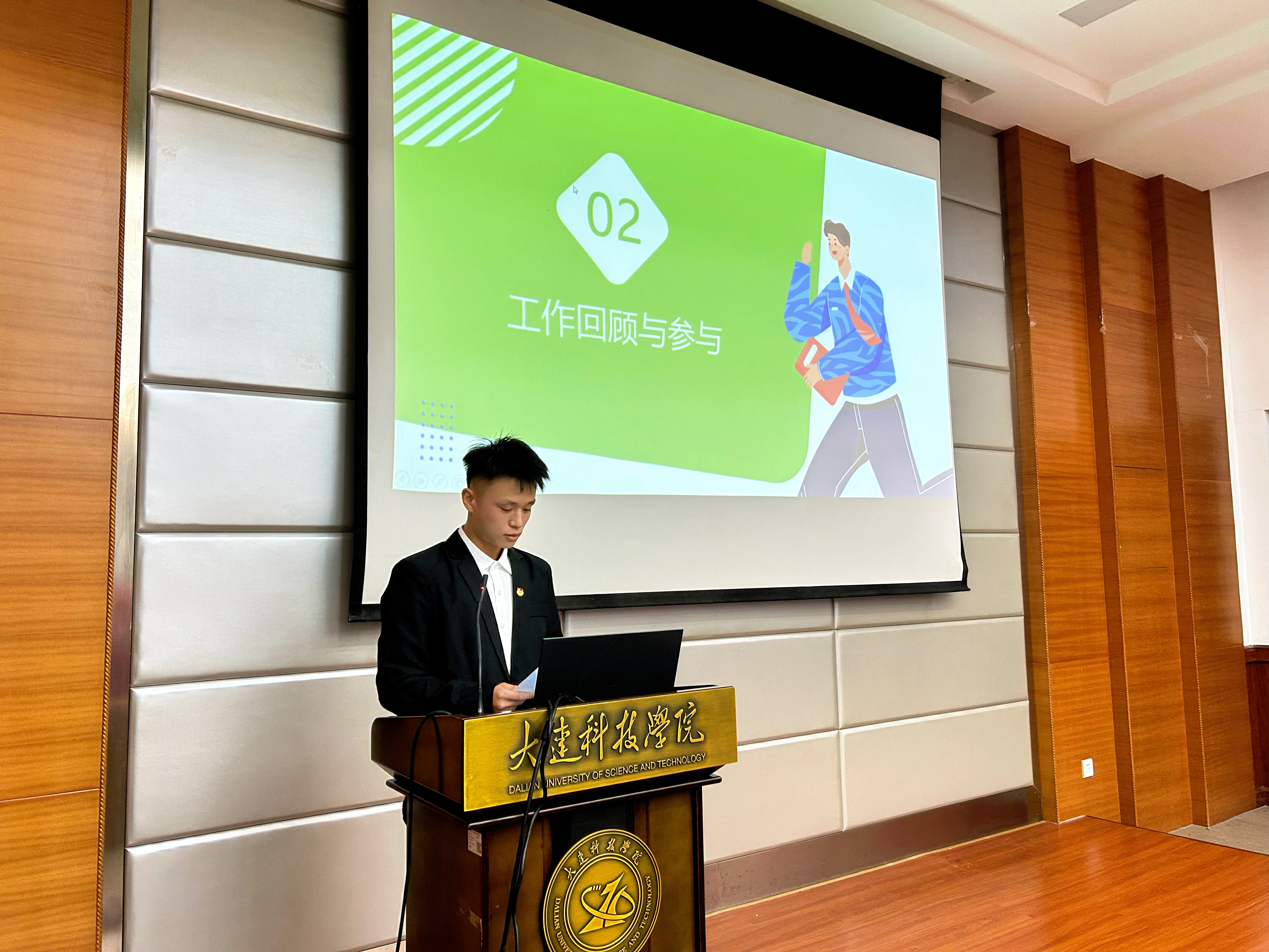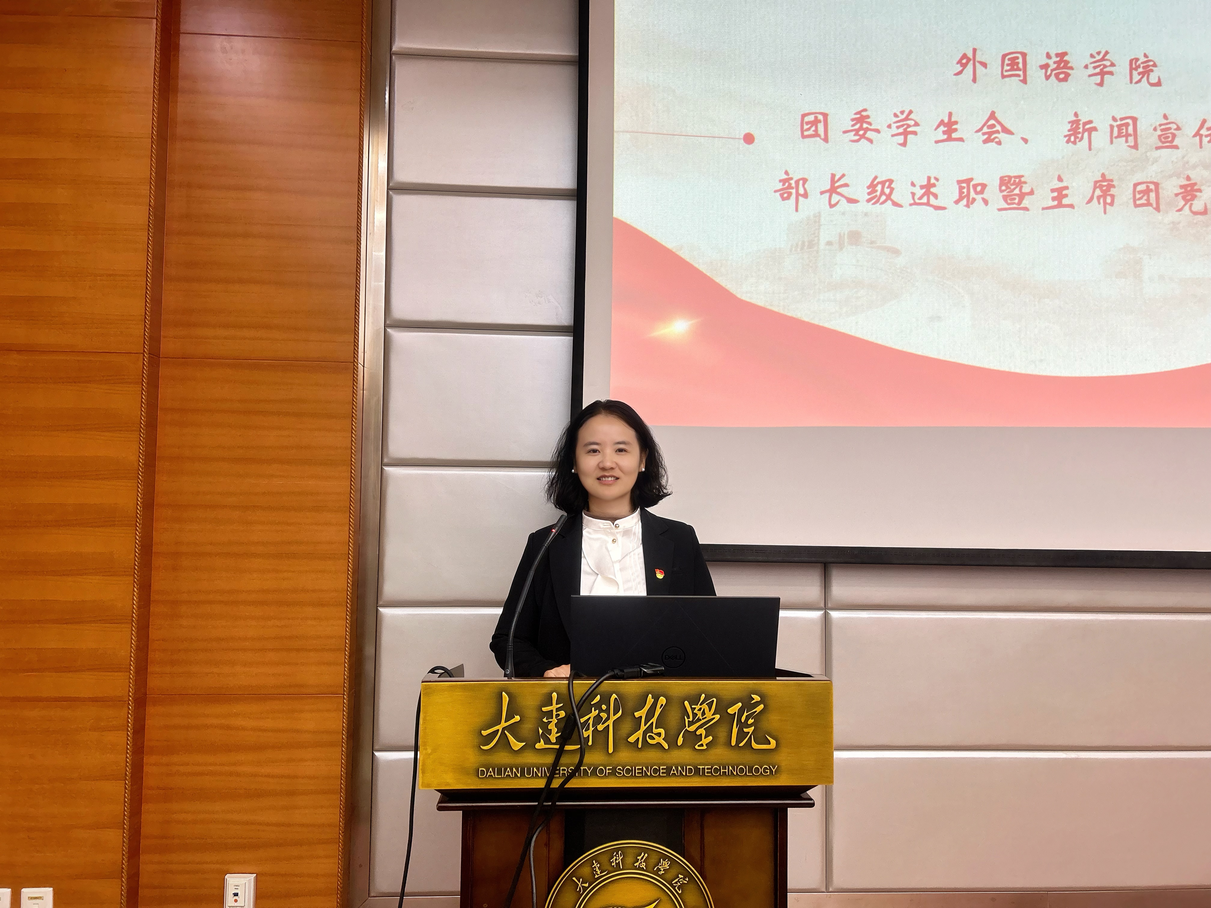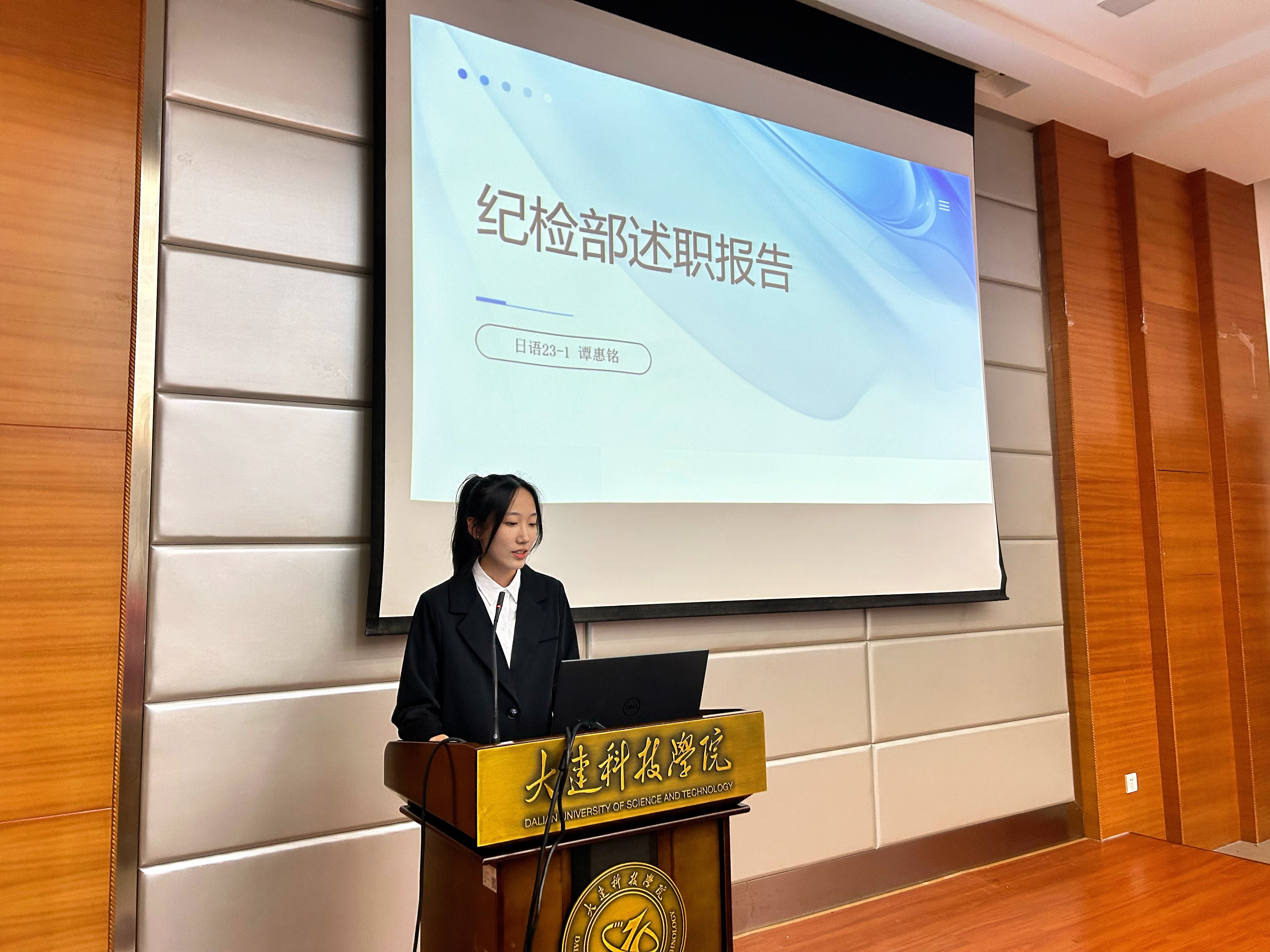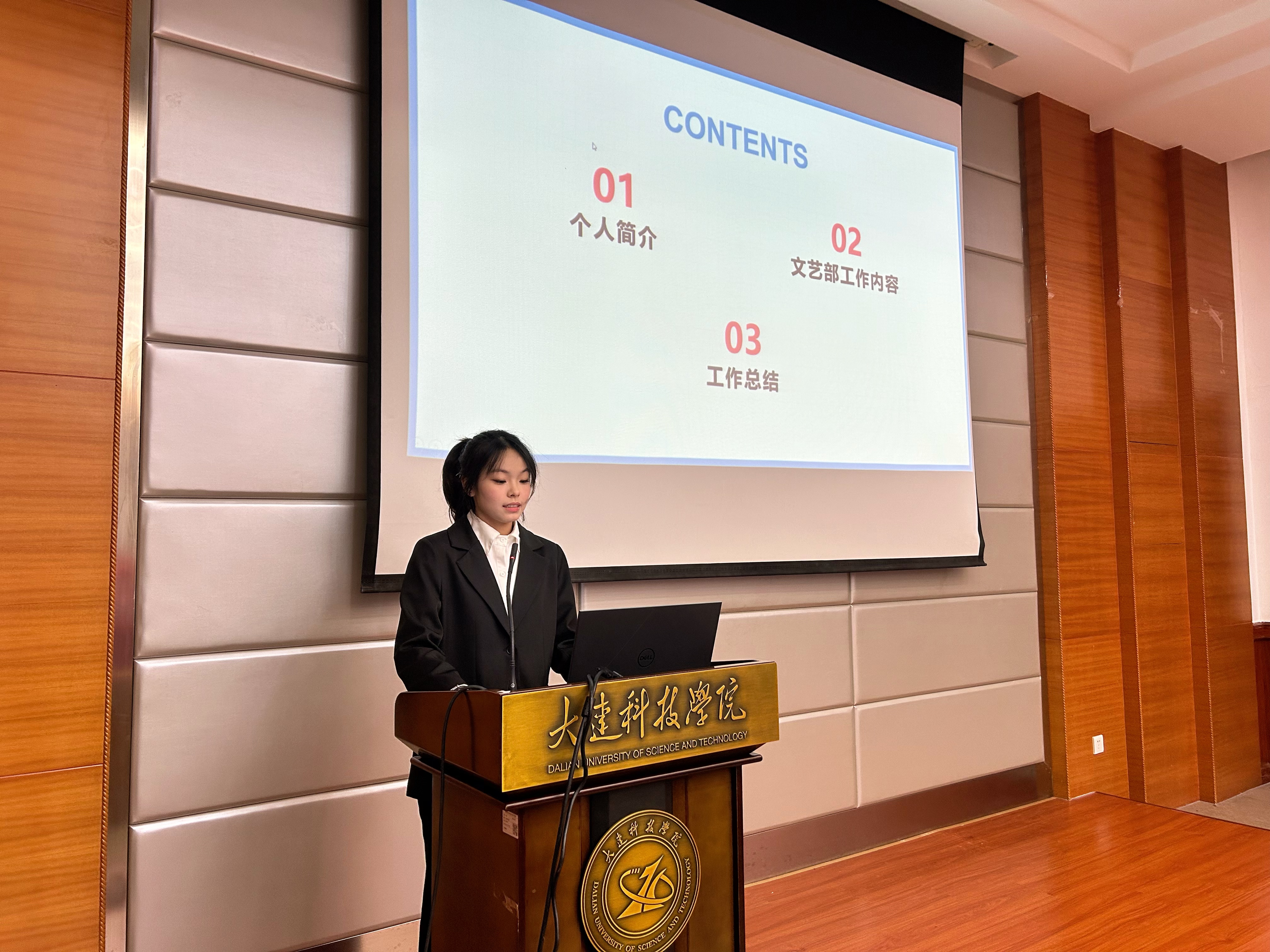 为进一步夯实学生工作团队建设基础,强化学生组织服务职能,树立全员服务意识,大连科技学院外国语学院于2025年10月20日18时,在职教105教室隆重举行第十一届团委学生会部长级述职暨主席团竞聘大会。外国语学院党总支副书记兼副院长王璐老师、学院团委书记崔雪梅老师、辅导员史佳炜老师与原佳琦老师出席会议,学生会主席团及各部门骨干竞选人员共同参会。本次会议由外国语学院24级日语专业1班的付柯萌主持。