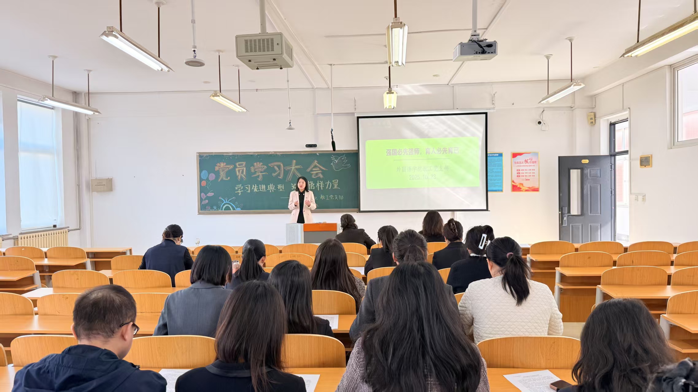 为推动理论学习走深走实、以先进典型凝聚奋进力量,10月23 日,外国语学院教工党支部以“学习先进典型,汲取榜样力量”为主题开展党日活动,系统学习《习近平谈治国理政》第五卷、韩铁强同志先进事迹及党的二十届四中全会相关知识。会议由教工党支部书记周伟主持,全体教工党员参会。