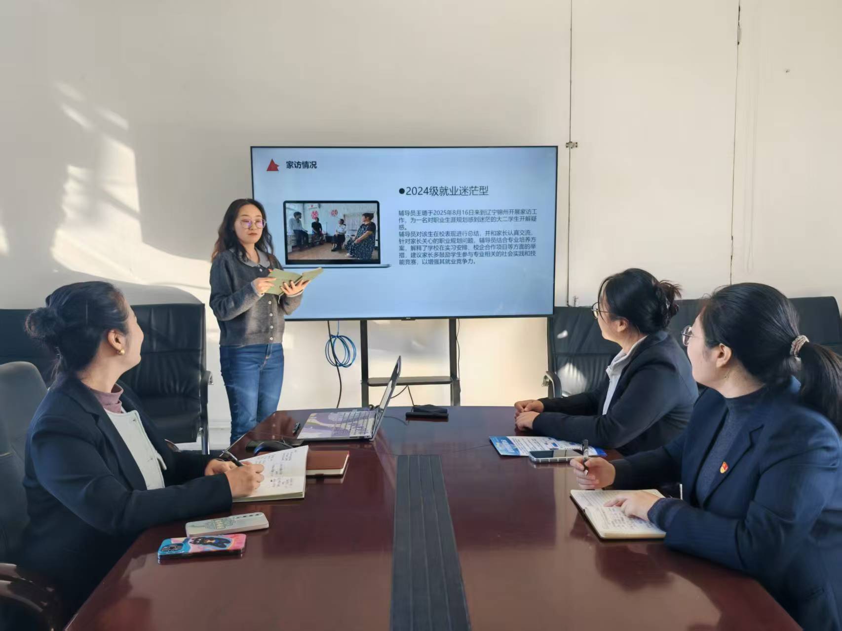 王璐老师针对大二“就业迷茫型”学生,亲赴锦州,结合专业培养方案为家长详解学校在实习安排、校企合作项目等方面的举措,引导学生通过社会实践增强竞争力。