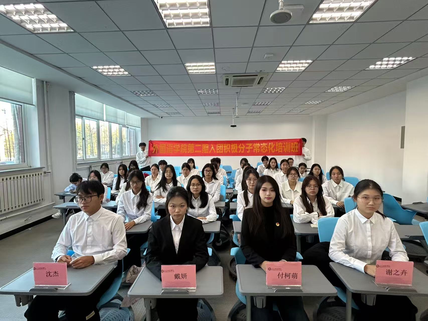 为厚植爱国情怀、强化使命担当,11月13日,外国语学院第二期入团积极分子常态化学习培训班红色观影活动在peim102室顺利开展。活动由英语25-2班戴妍主持,通过集中观看“纪念中国人民抗日战争暨世界反法西斯战争胜利80周年大会”经典影像、交流观后感悟,带领入团积极分子沉浸式感受大国军威、汲取奋进力量。