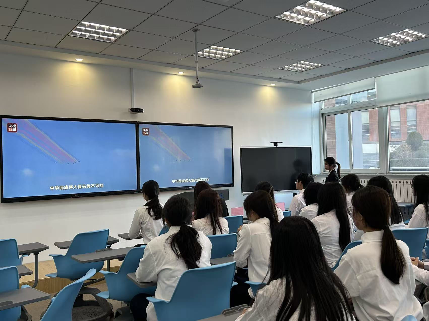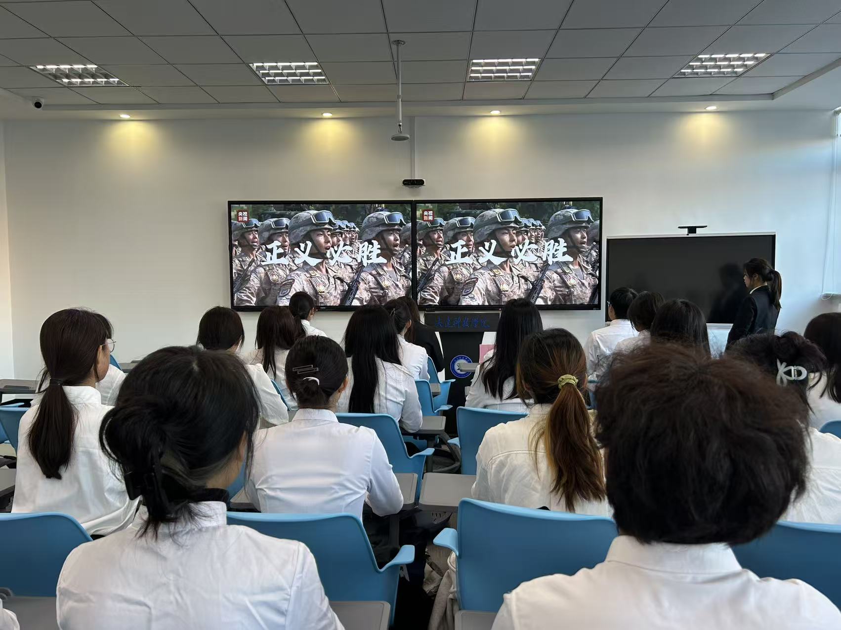 观影前,主持人戴妍为大家简要介绍了活动背景与核心意义:“纪念中国人民抗日战争暨世界反法西斯战争胜利80周年大会”既是对14年浴血抗战的深情回望,也是人民军队奋进建军百年的崭新亮相,更向世界宣示了中国捍卫和平正义的坚定决心。这场盛典是最生动的爱国主义教材,希望大家在观影中读懂家国情怀,在震撼中坚定青春信念。