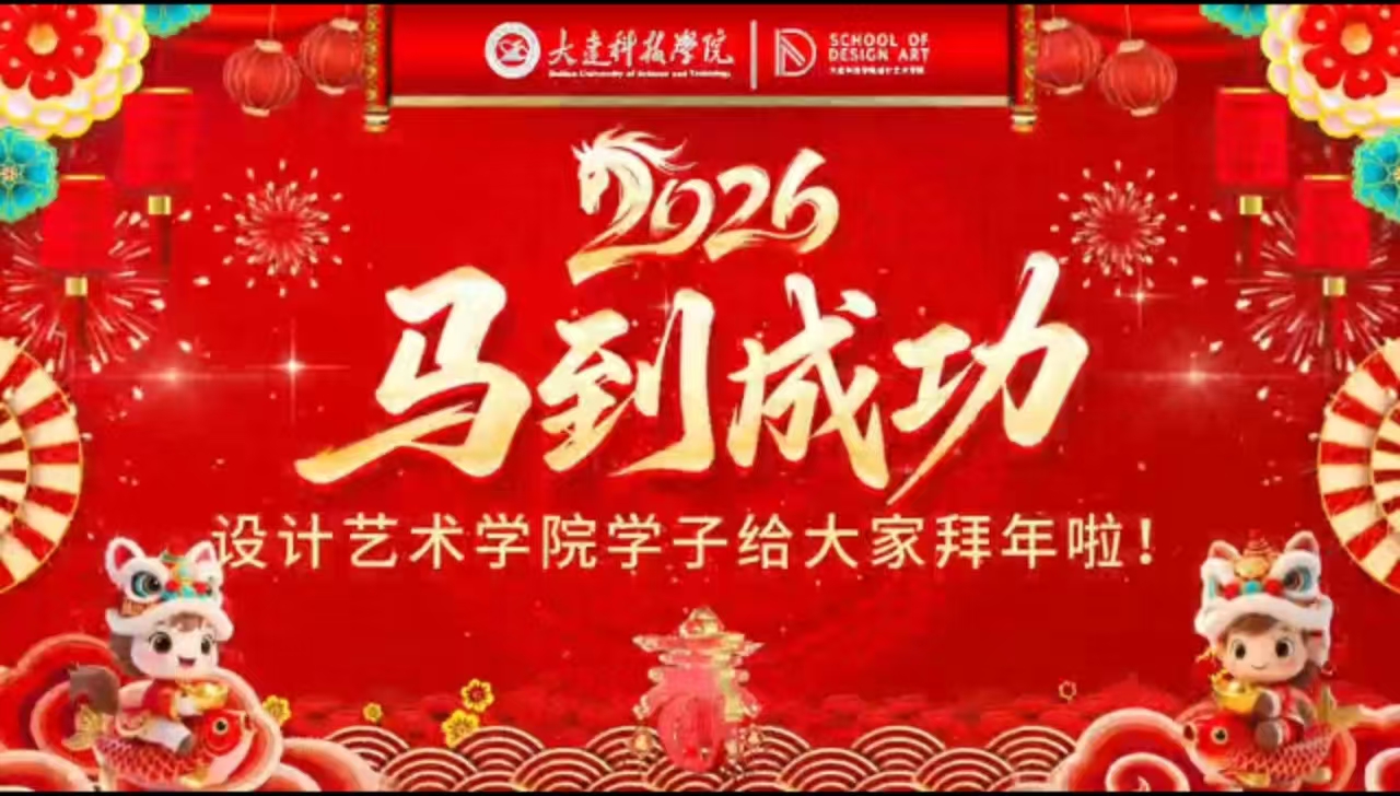 大连科技学院设计艺术学院全体师生,给您拜年啦! 愿您在2026年:心中有丘壑,笔下有乾坤; 策马踏春风,前程皆似锦。 祝大家新春快乐,福暖四季,艺路繁花!