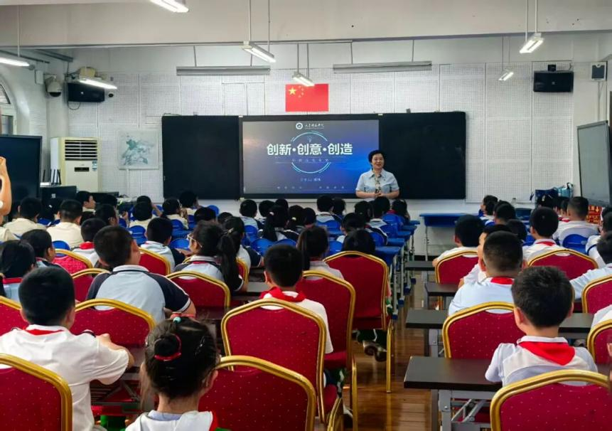 仪式结束后,大同小学全校21个班级分别在操场、体育馆、班级开展了内容丰富的特色课程,使各种抽象原理变得直观可感。董玮教授为同学们带来《创新创意创造》精彩报告,使同学们在聆听讲座时感悟科学精神,激发创新灵感。